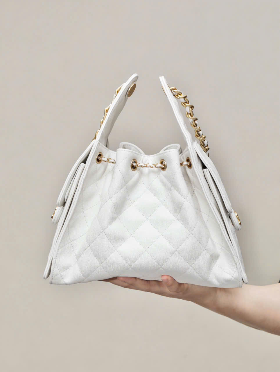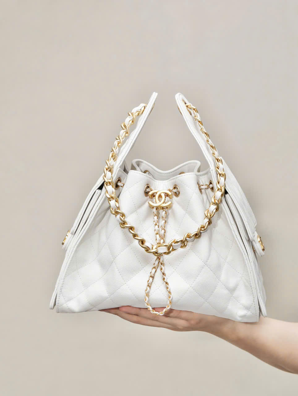 Túi Xách Chanel Jennie Like Auth Màu Trắng Dáng Hobo 26cm (2)