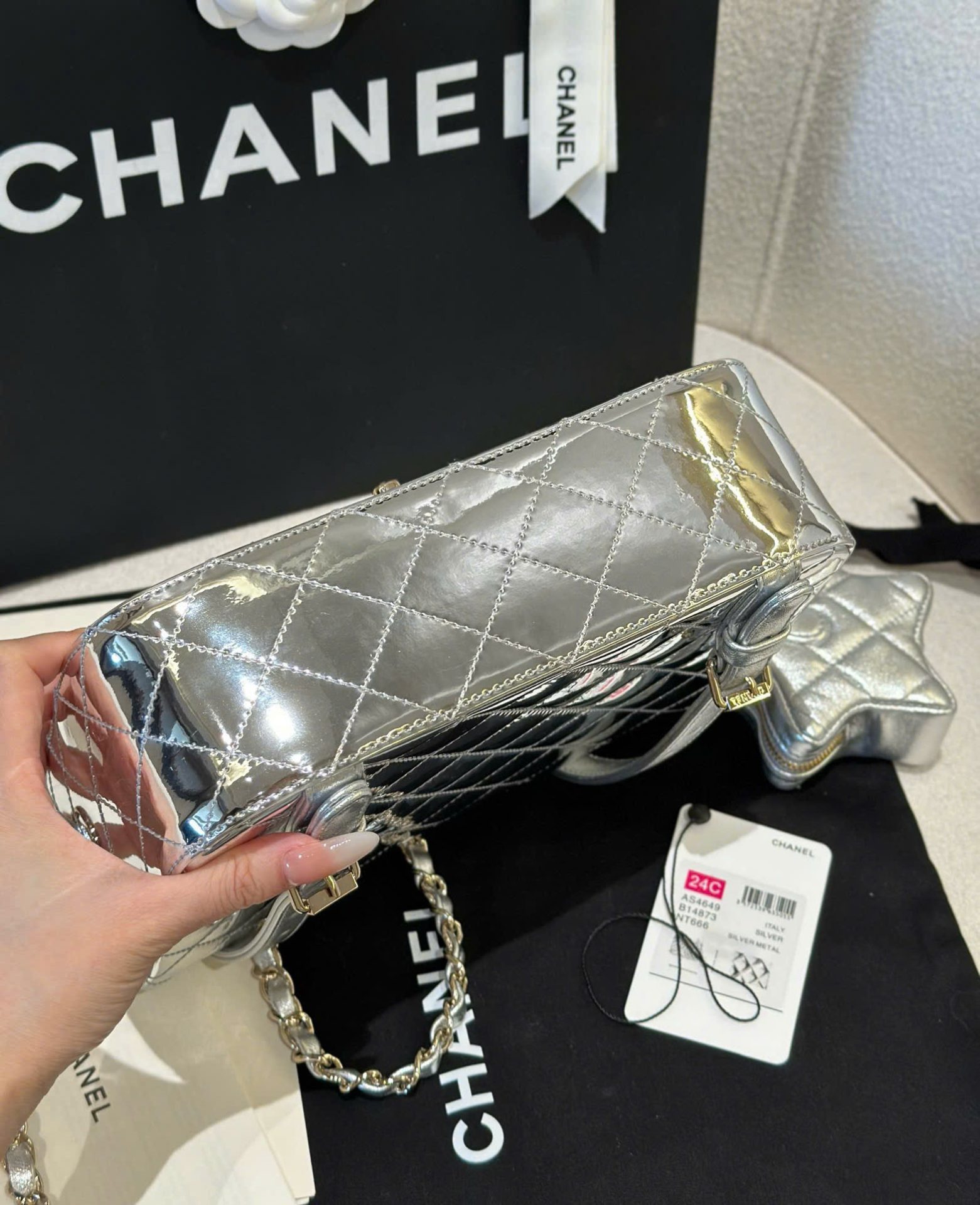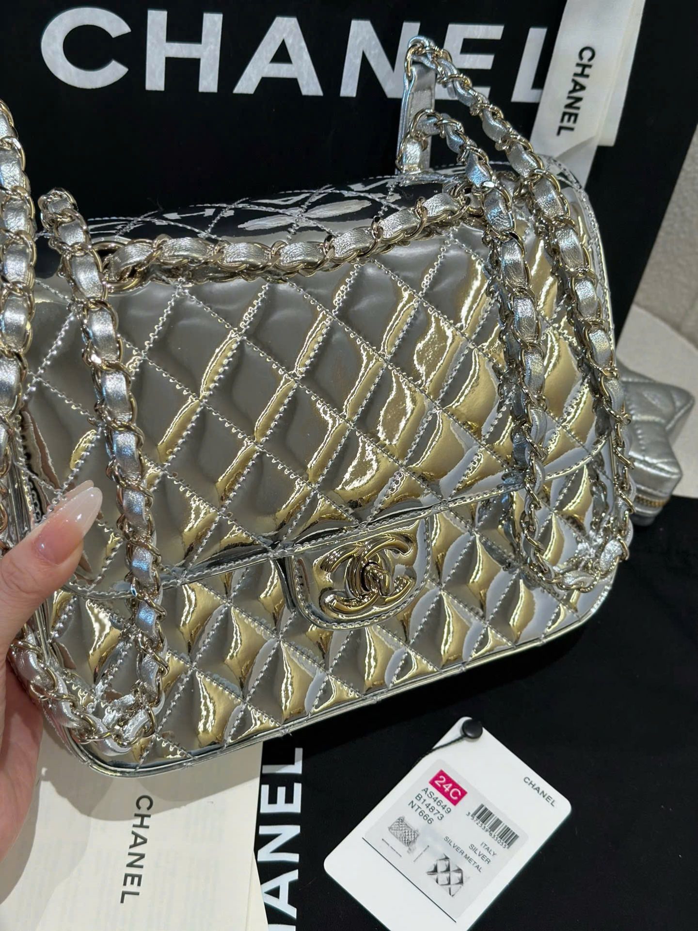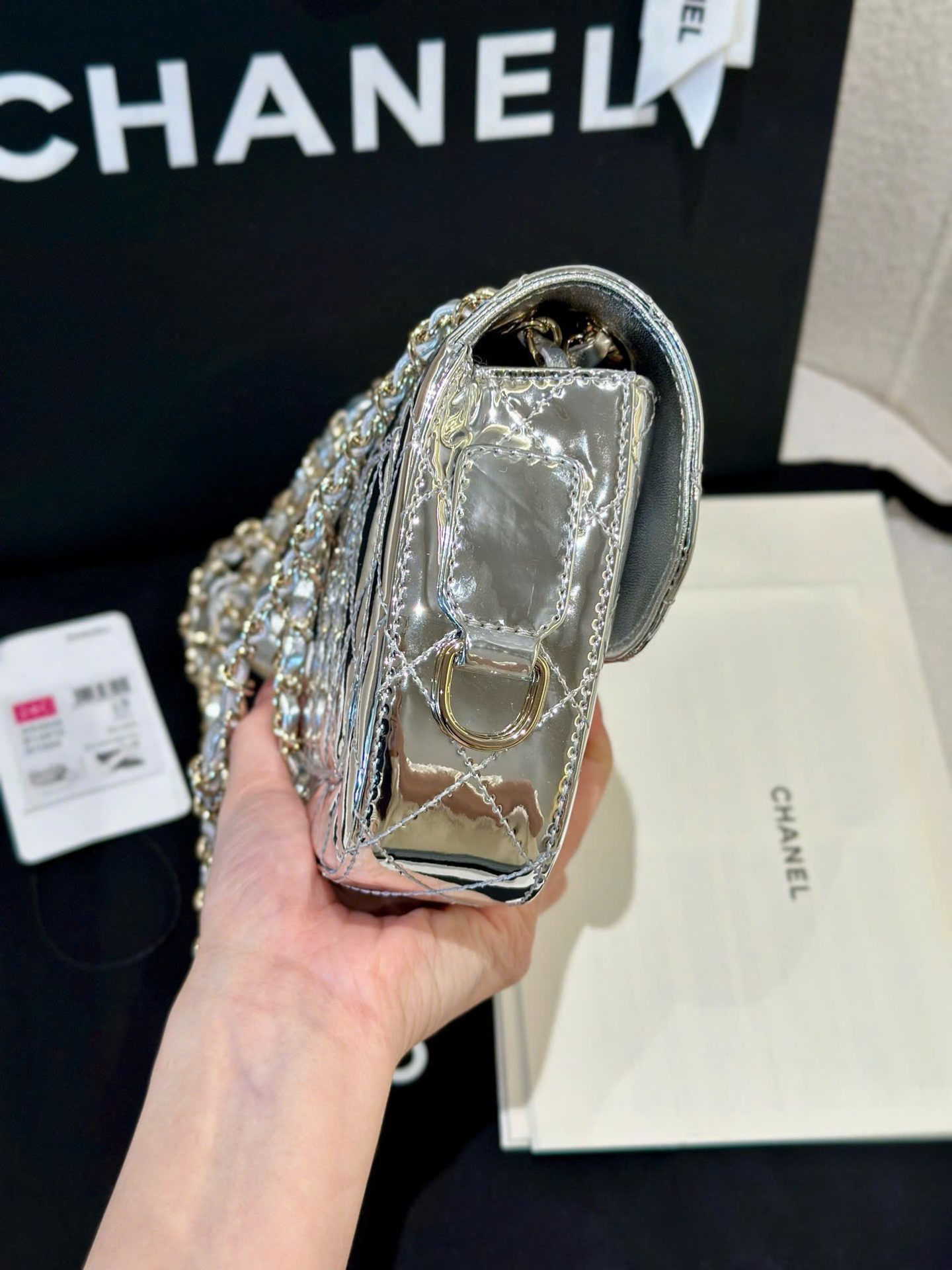 Túi Xách Chanel Nữ Like Auth Màu Bạc Chất Da Bóng 24x19cm (1)