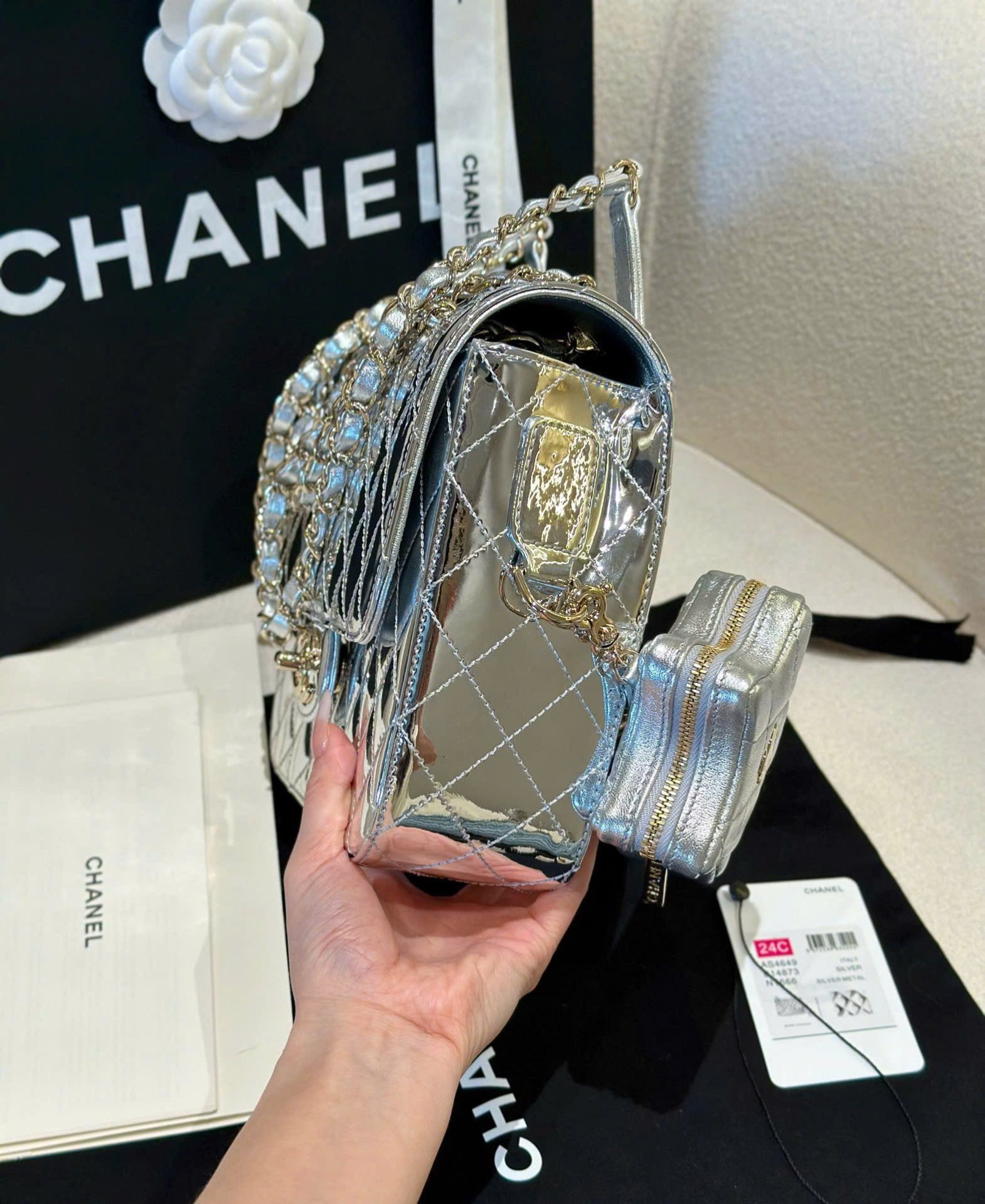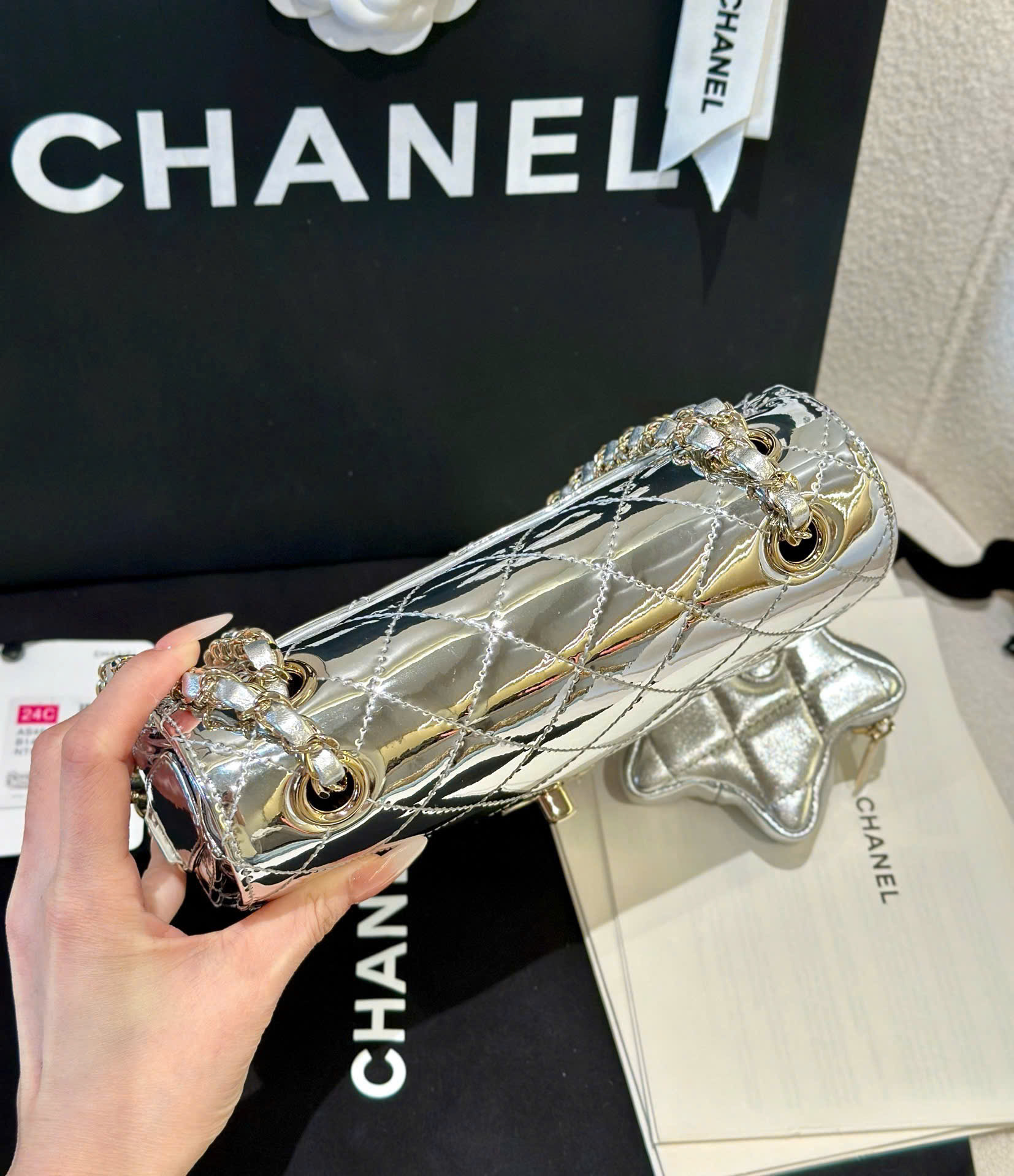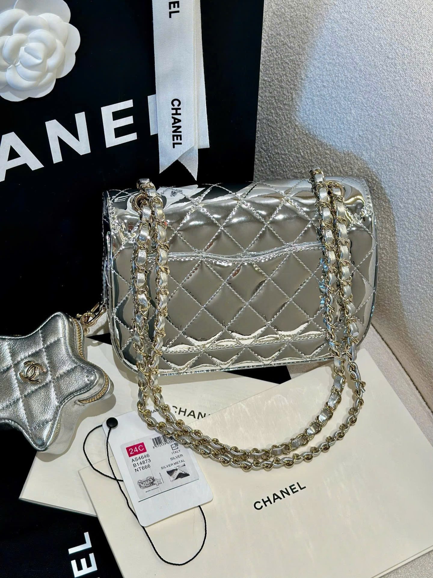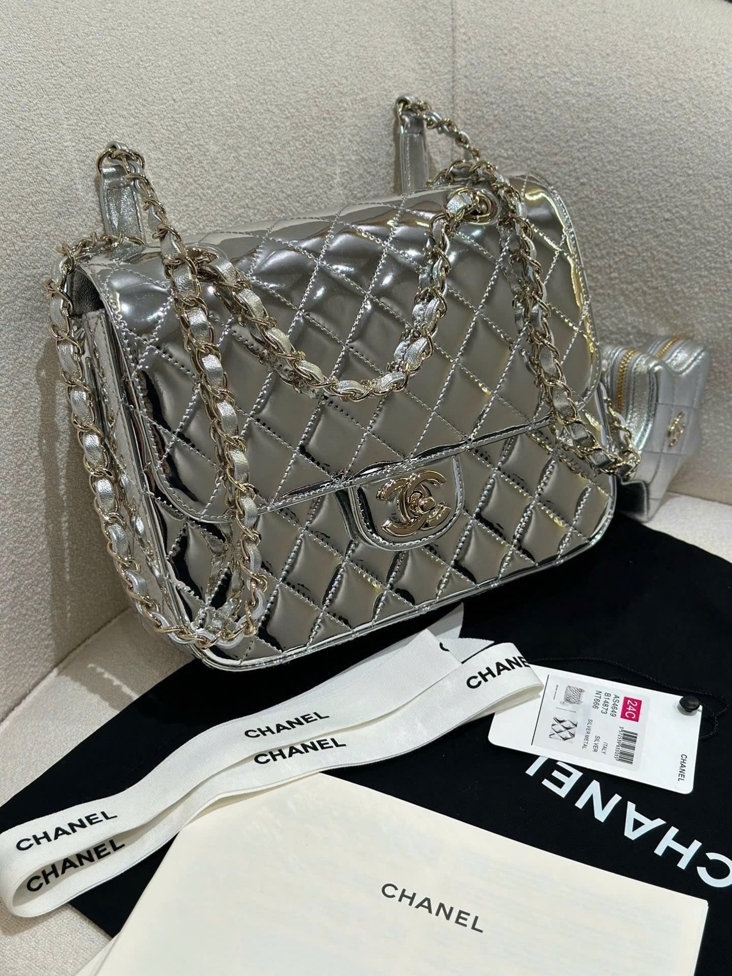 Túi Xách Chanel Nữ Like Auth Màu Bạc Chất Da Bóng 24x19cm (1)