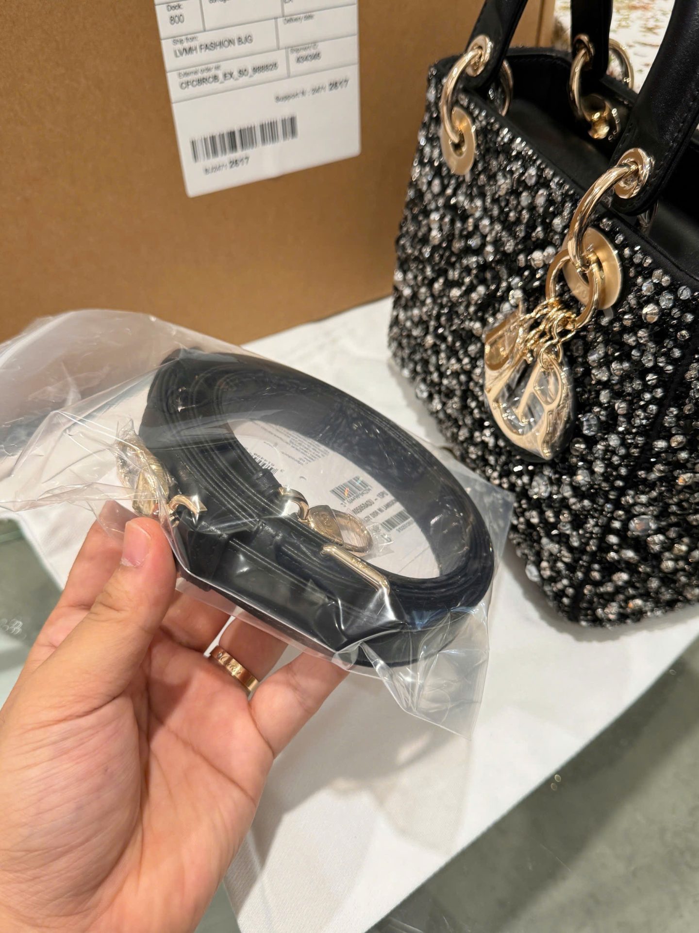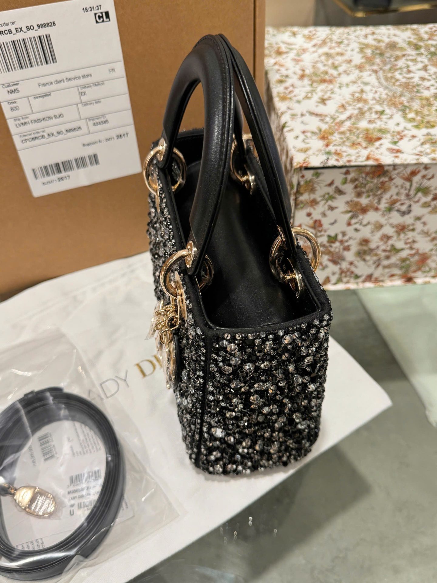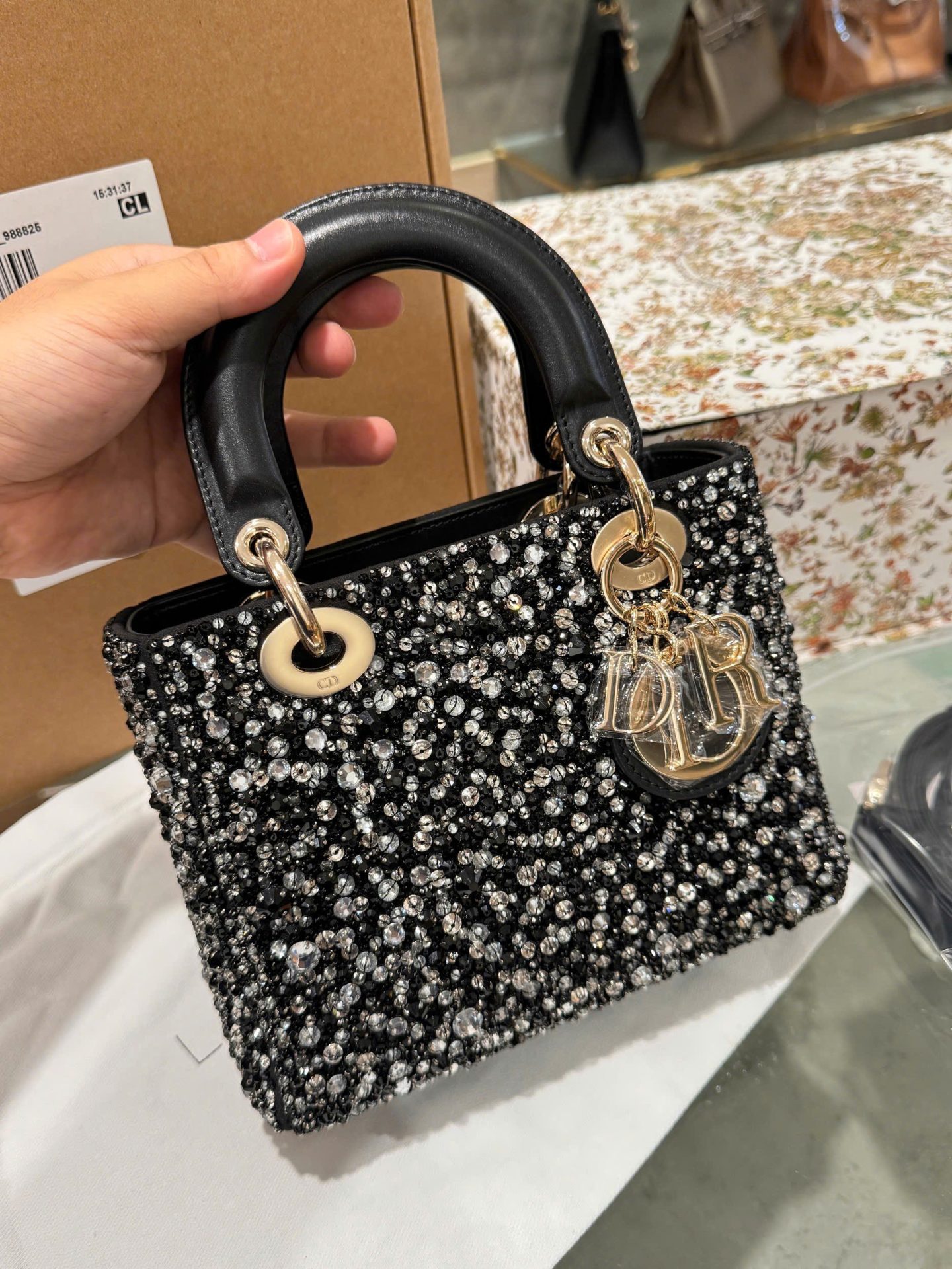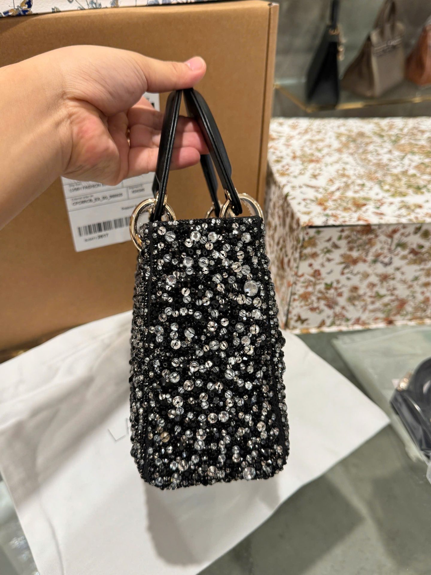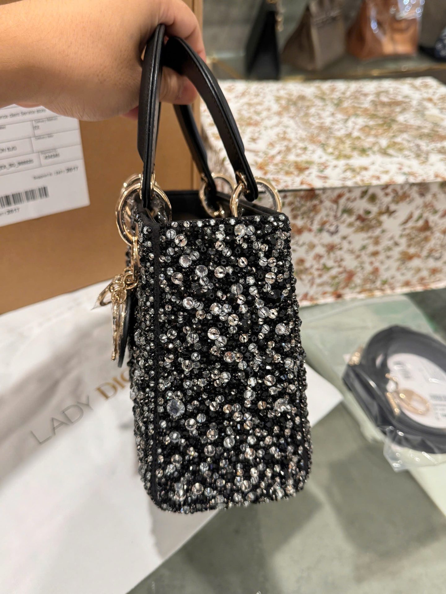 Túi Xách Dior Lady Nữ Màu Đen Đính Cườm Like Auth 20cm