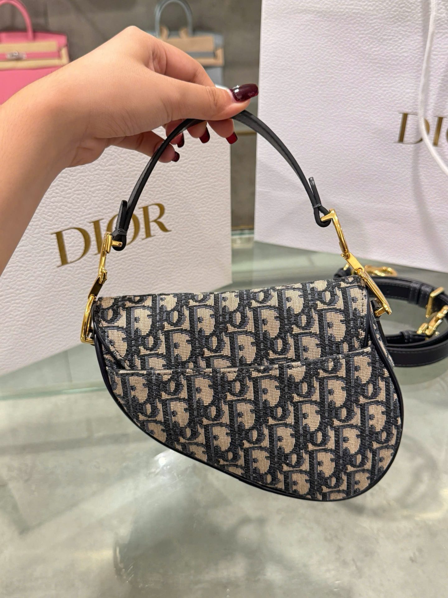 Túi Xách Dior Saddle Siêu Cấp Hoạ Tiết Dior Khoá Vàng 21x18x5cm