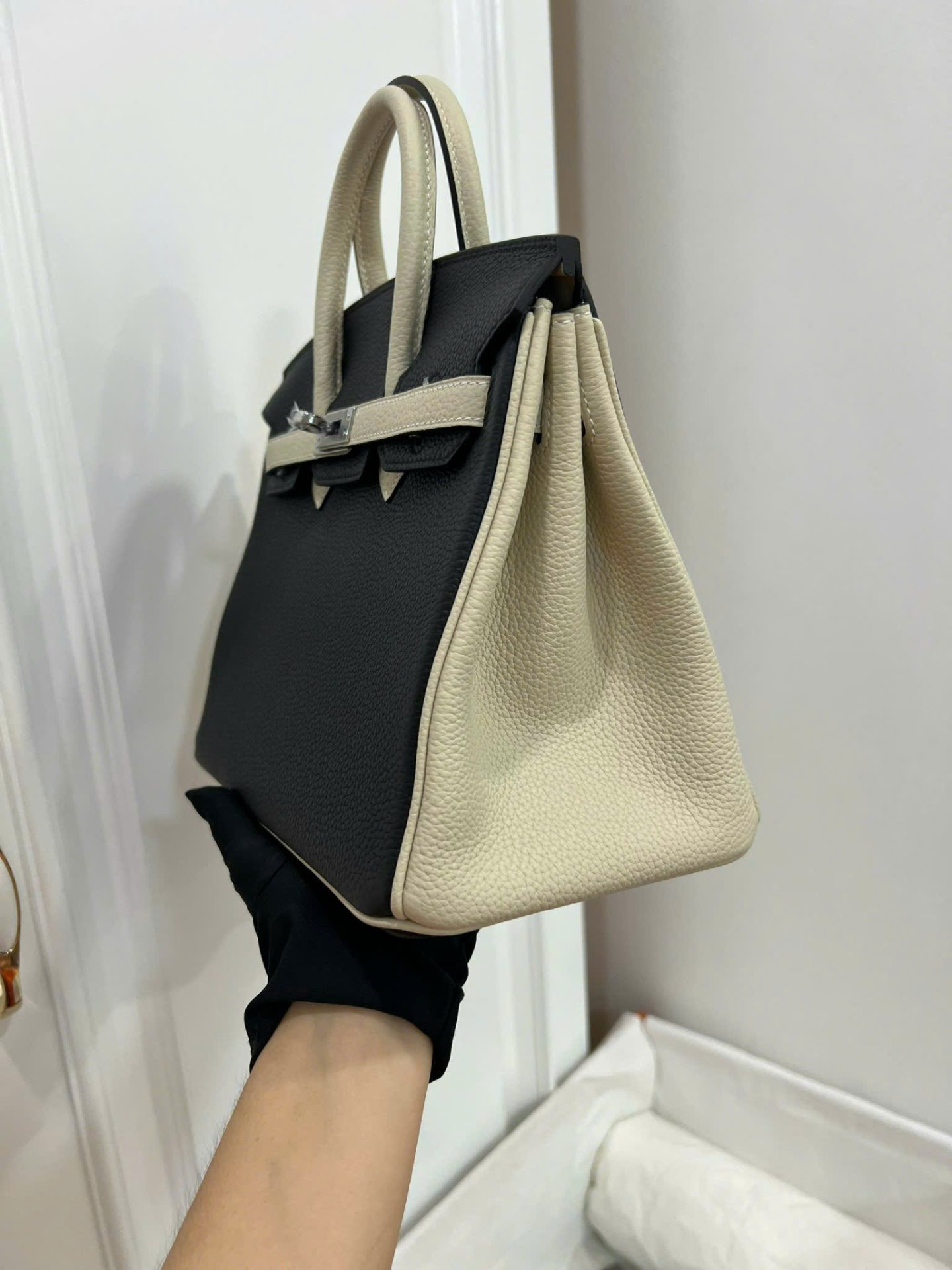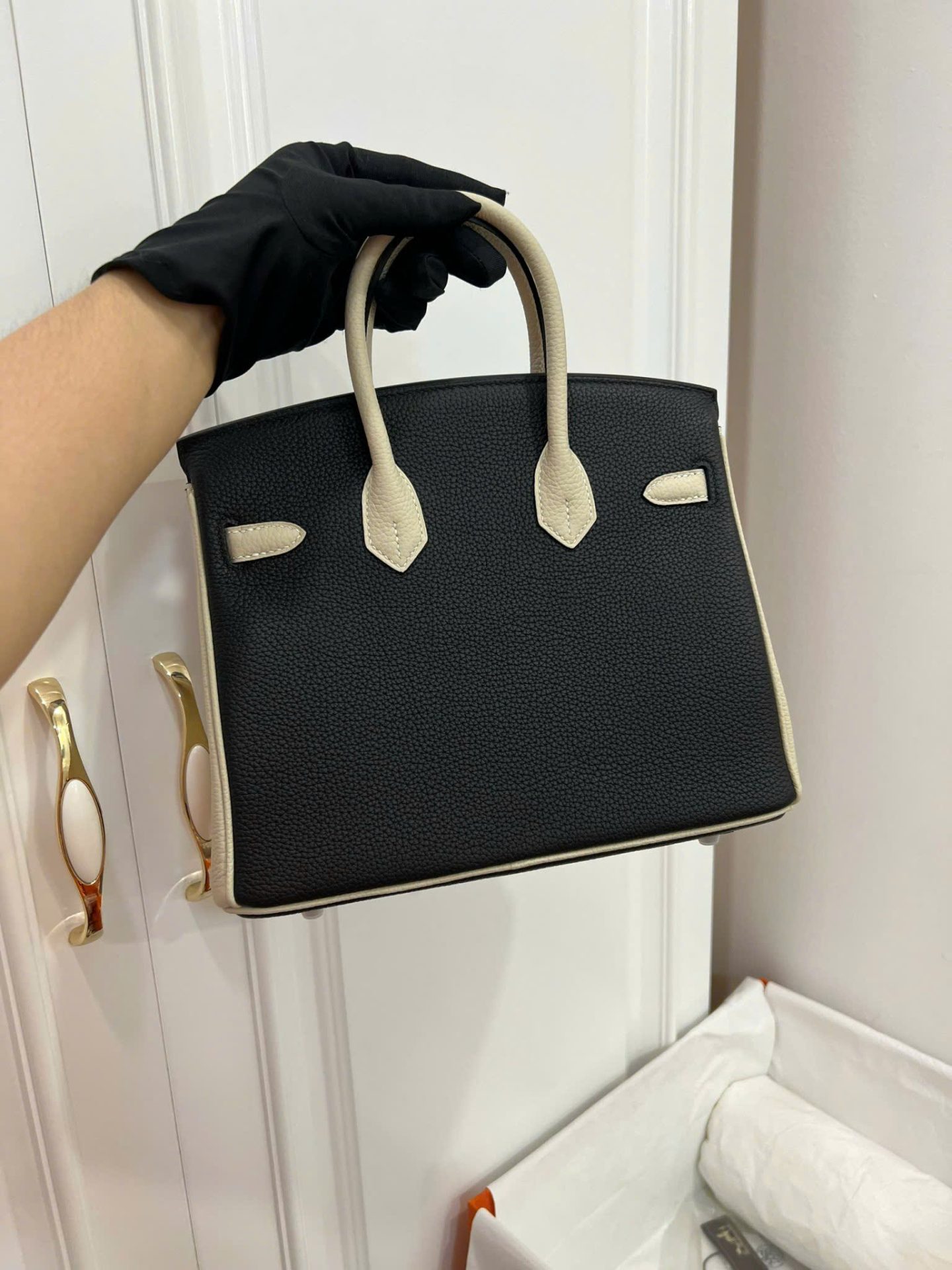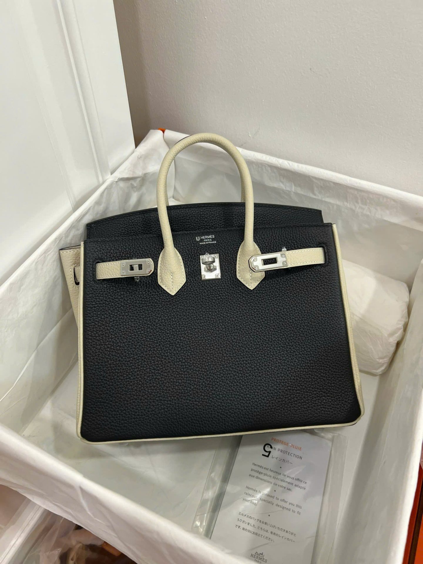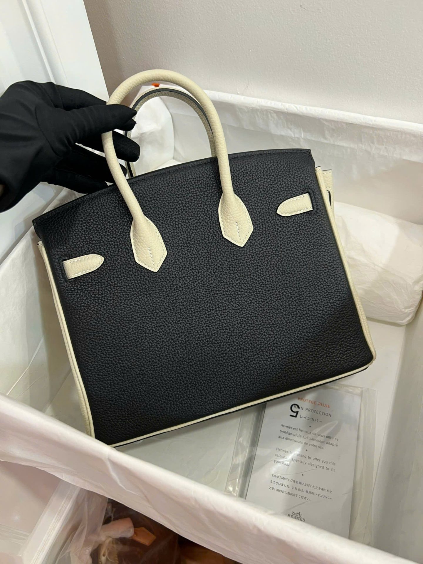 Túi Xách Hermes Birkin Like Auth Nữ Mix 2 Màu Trắng Đen 25cm