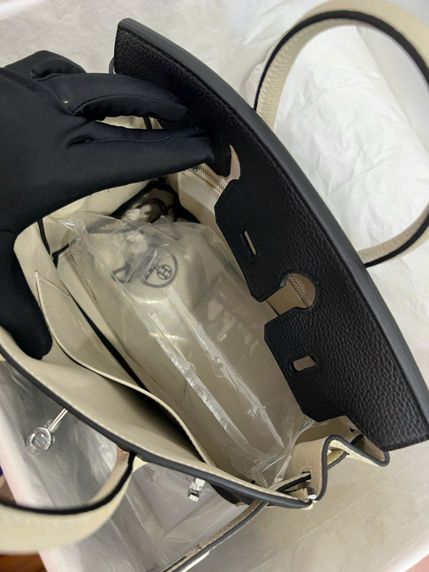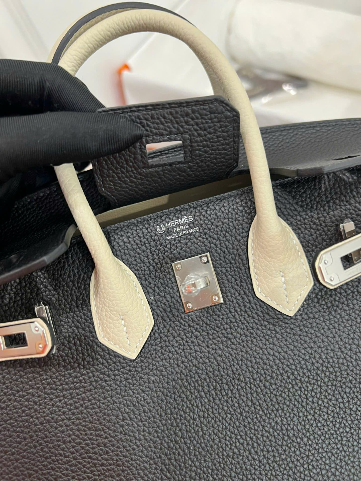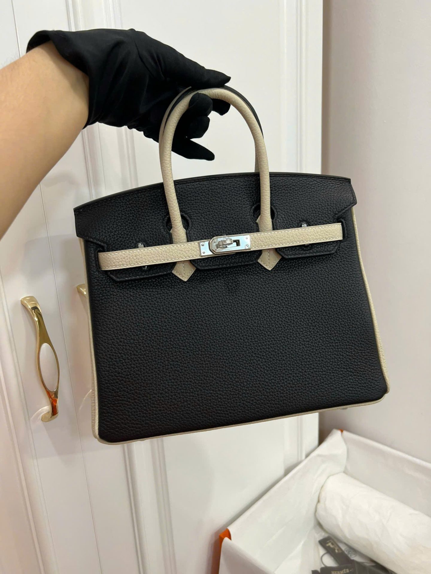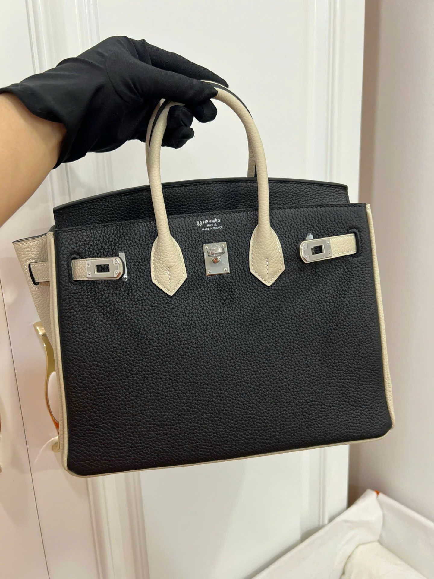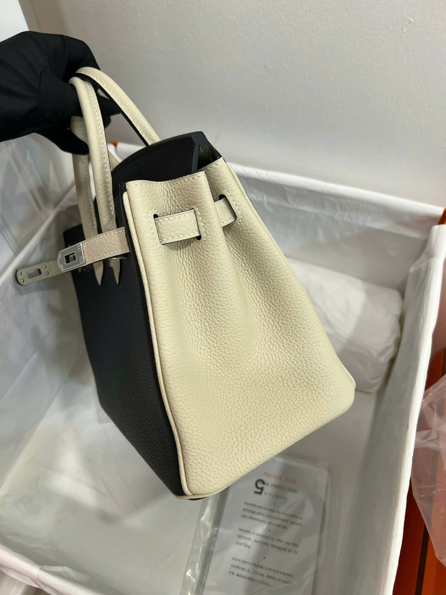 Túi Xách Hermes Birkin Like Auth Nữ Mix 2 Màu Trắng Đen 25cm
