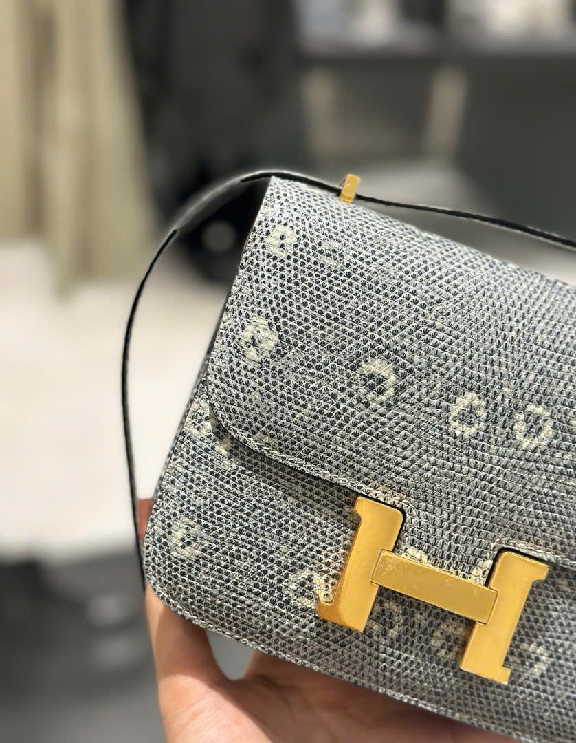 Túi Xách Hermes Constance Like Auth Nữ Da Thằn Lằn Khoá Vàng 18cm