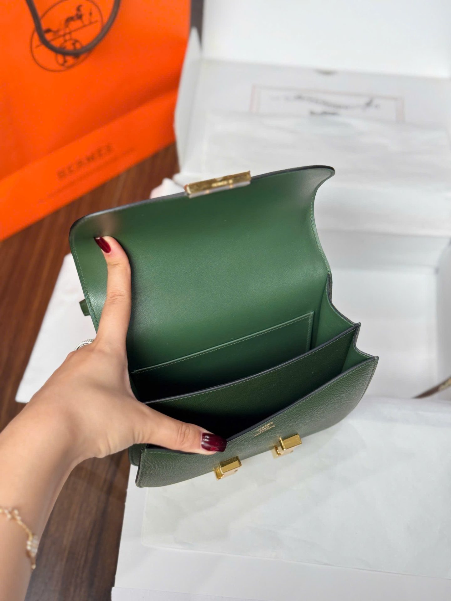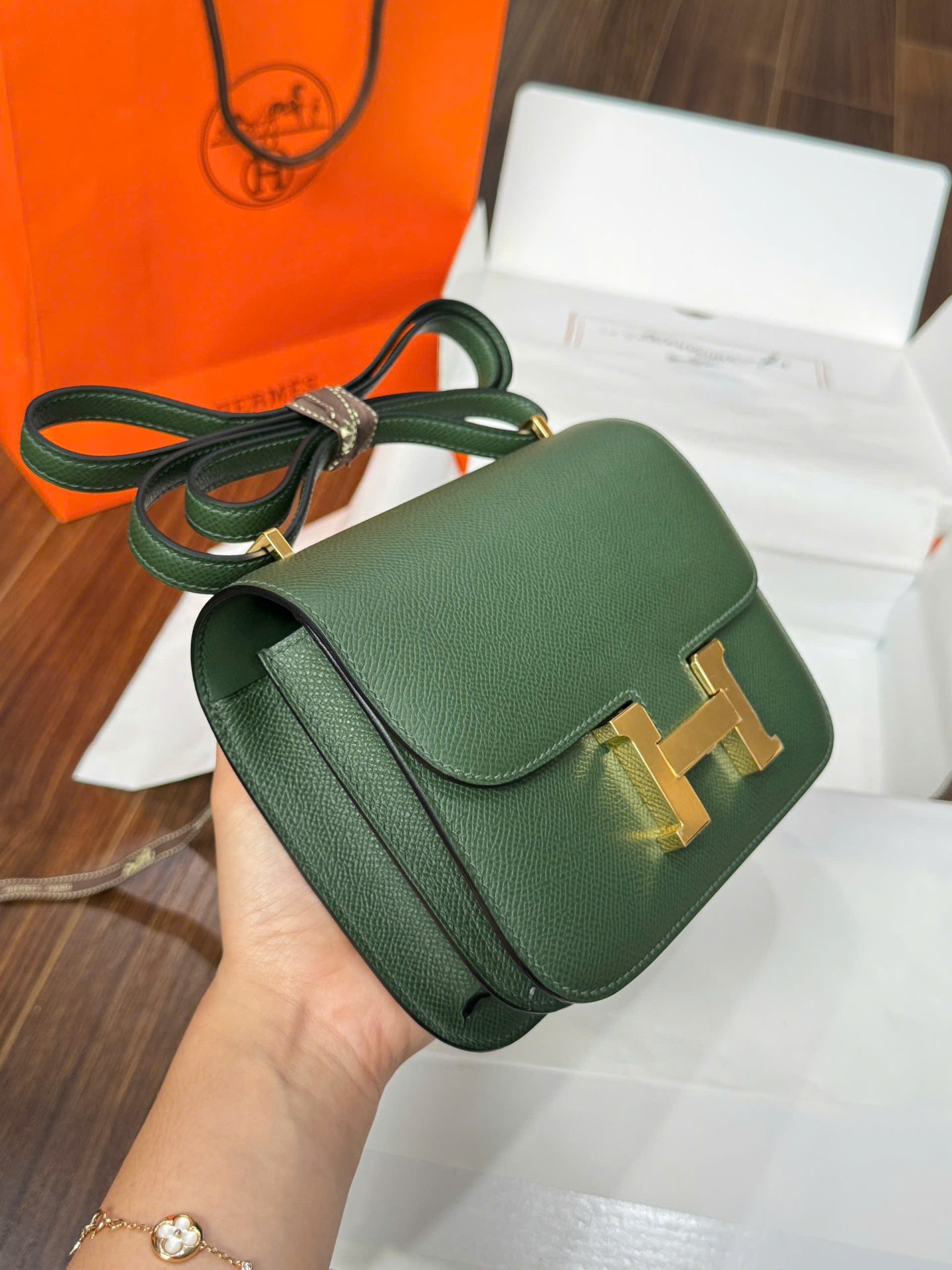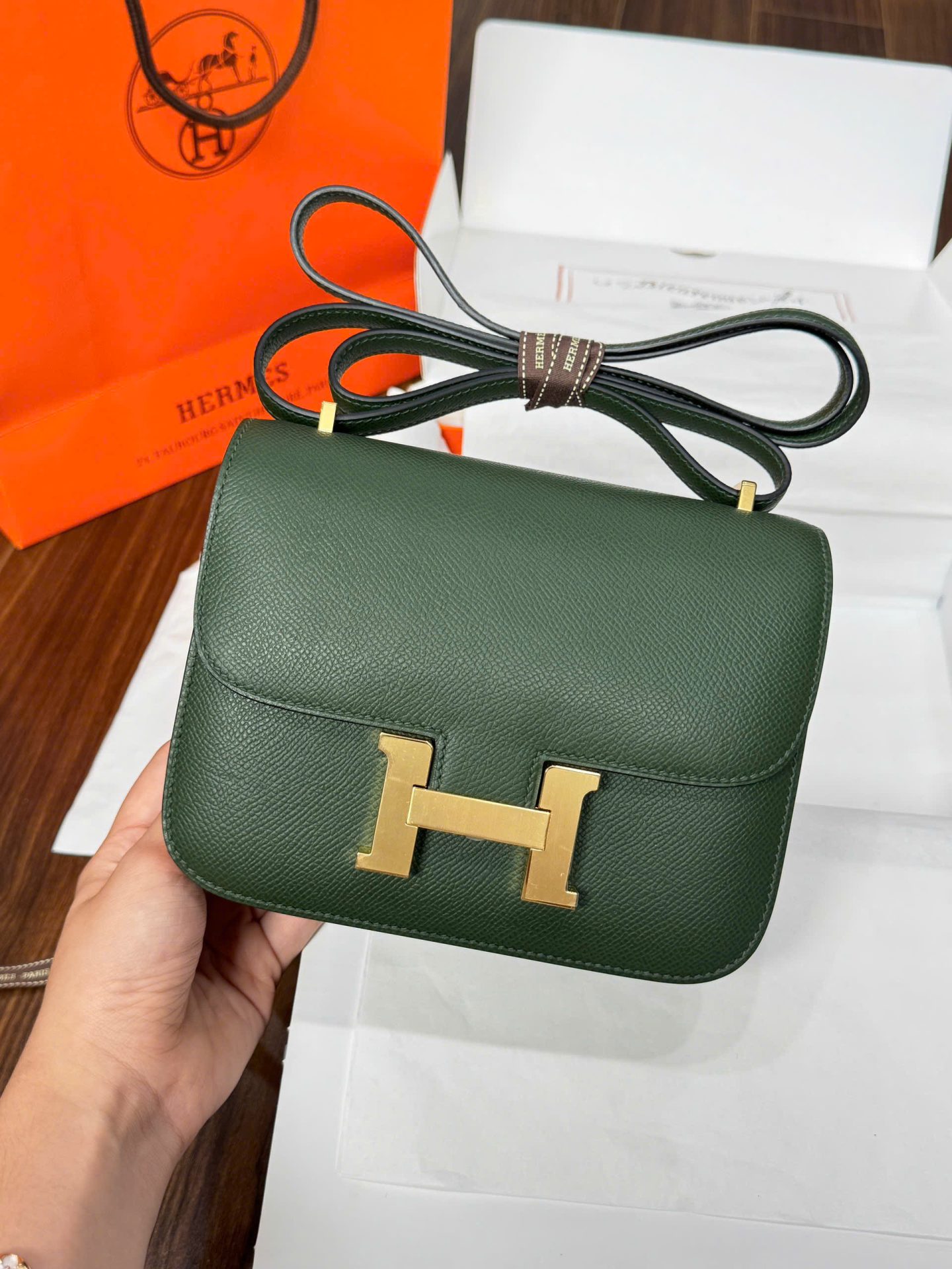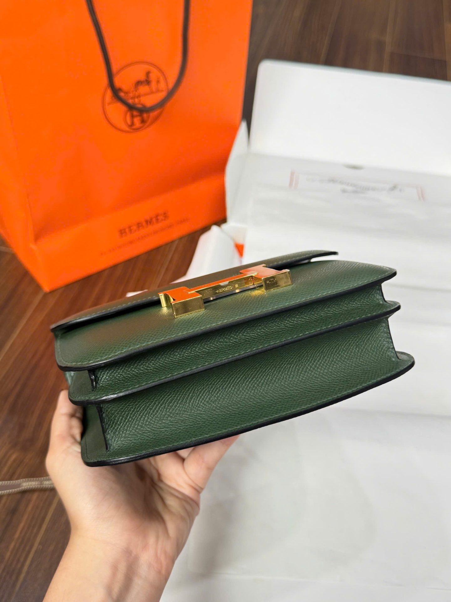 Túi Xách Hermes Constance Nữ Màu Xanh Rêu Like Auth đang có sẵn tại King Replica.