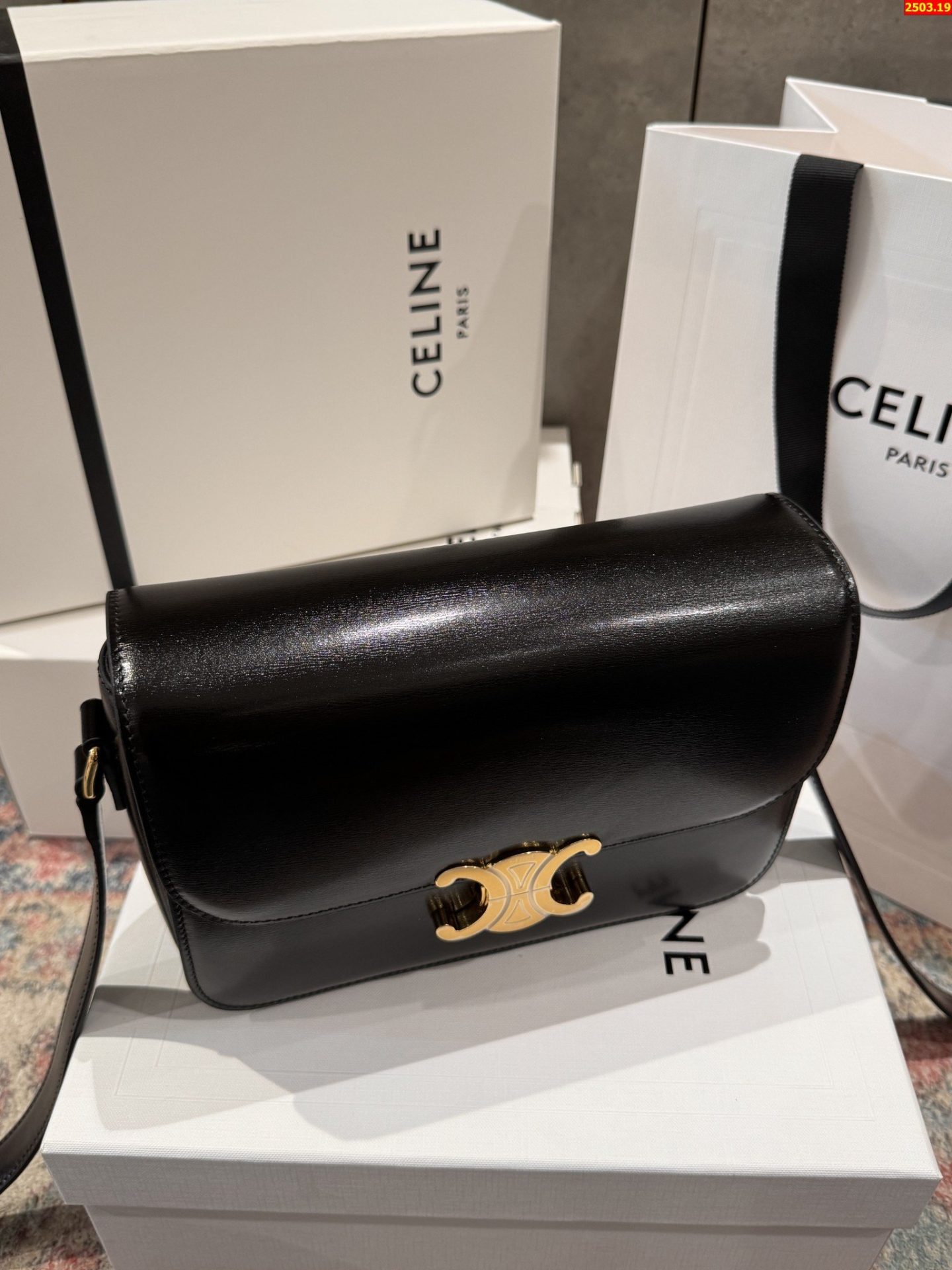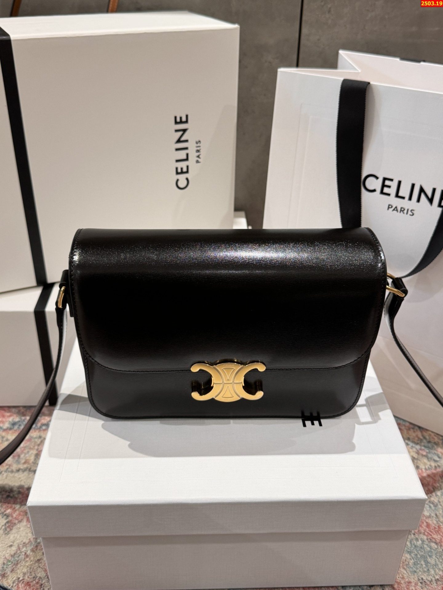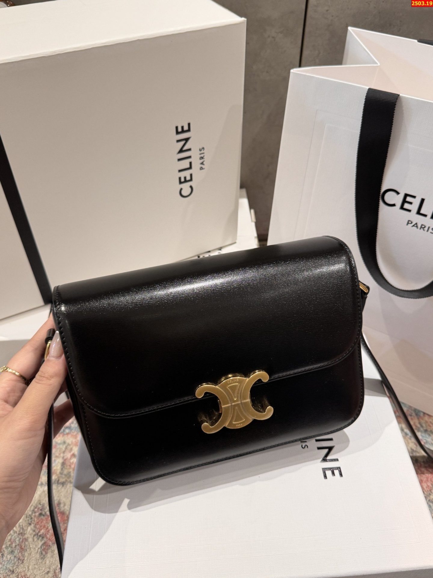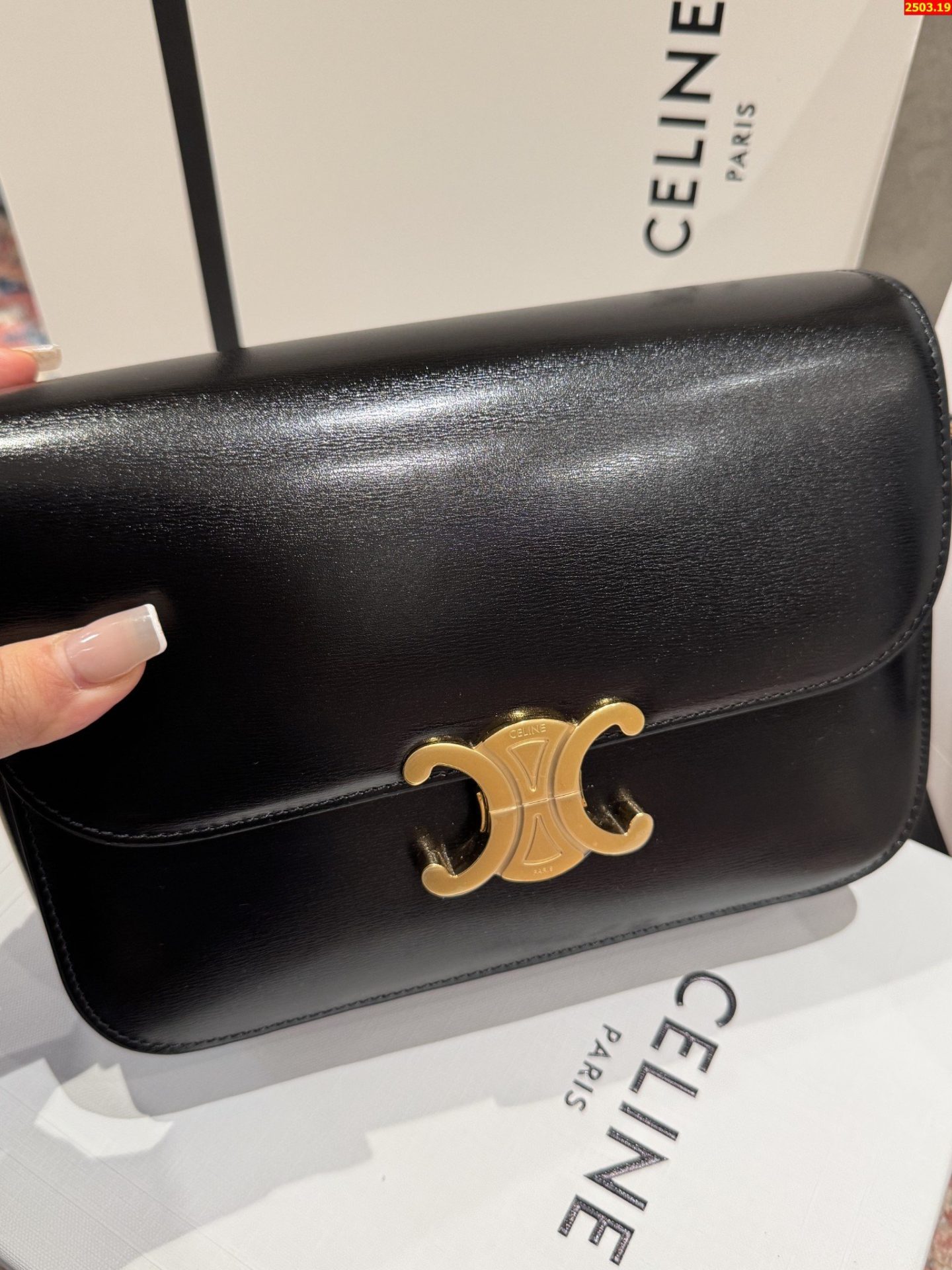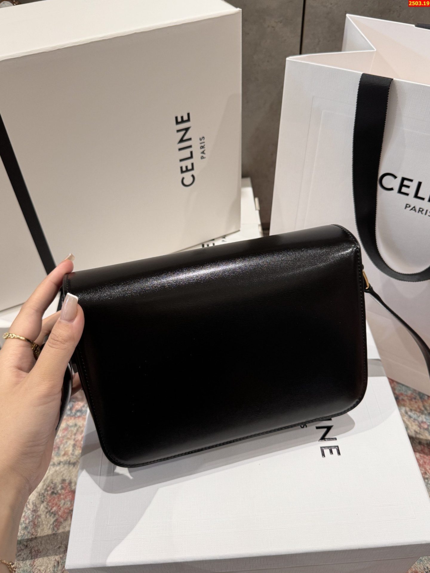 Túi Xách Nữ Celine Triomphe Siêu Cấp Da Trơn Màu Đen 22.5×16.5×7.5cm