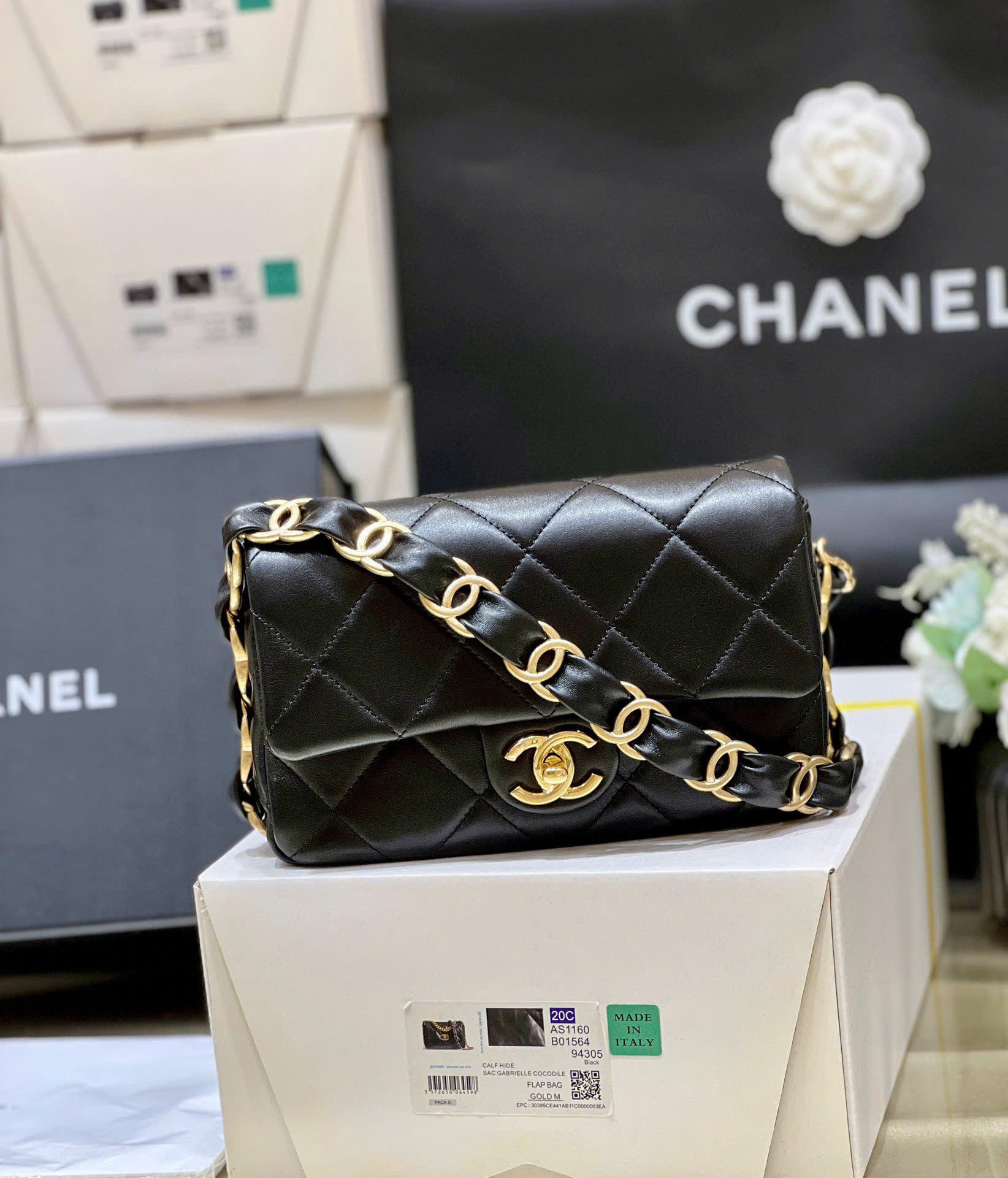 Túi Xách Nữ Chanel Flap 24K Siêu Cấp Màu Đen Khoá Vàng 21mm
