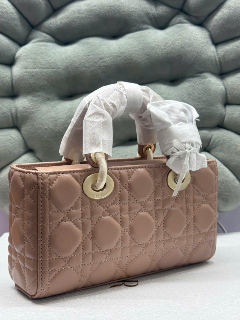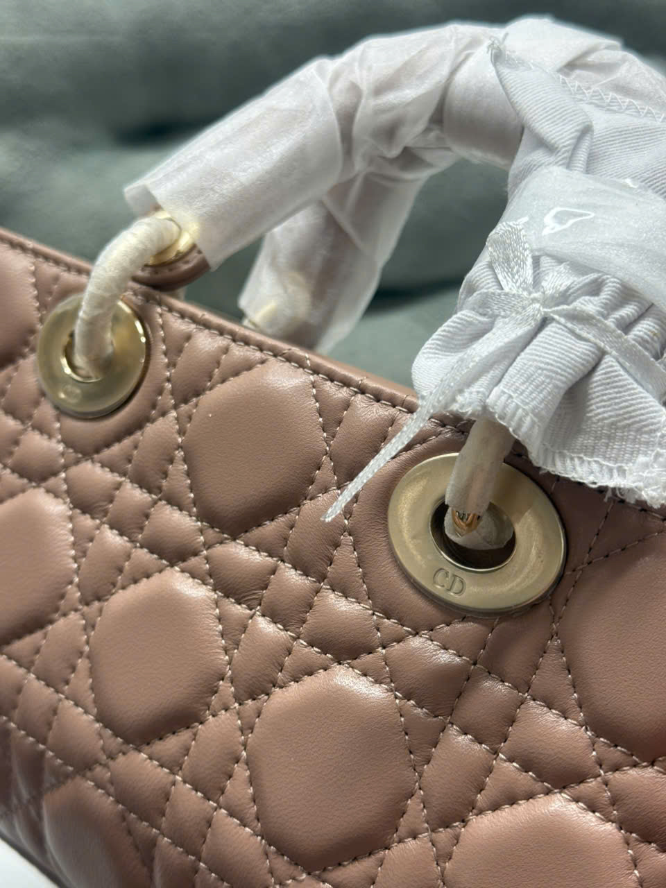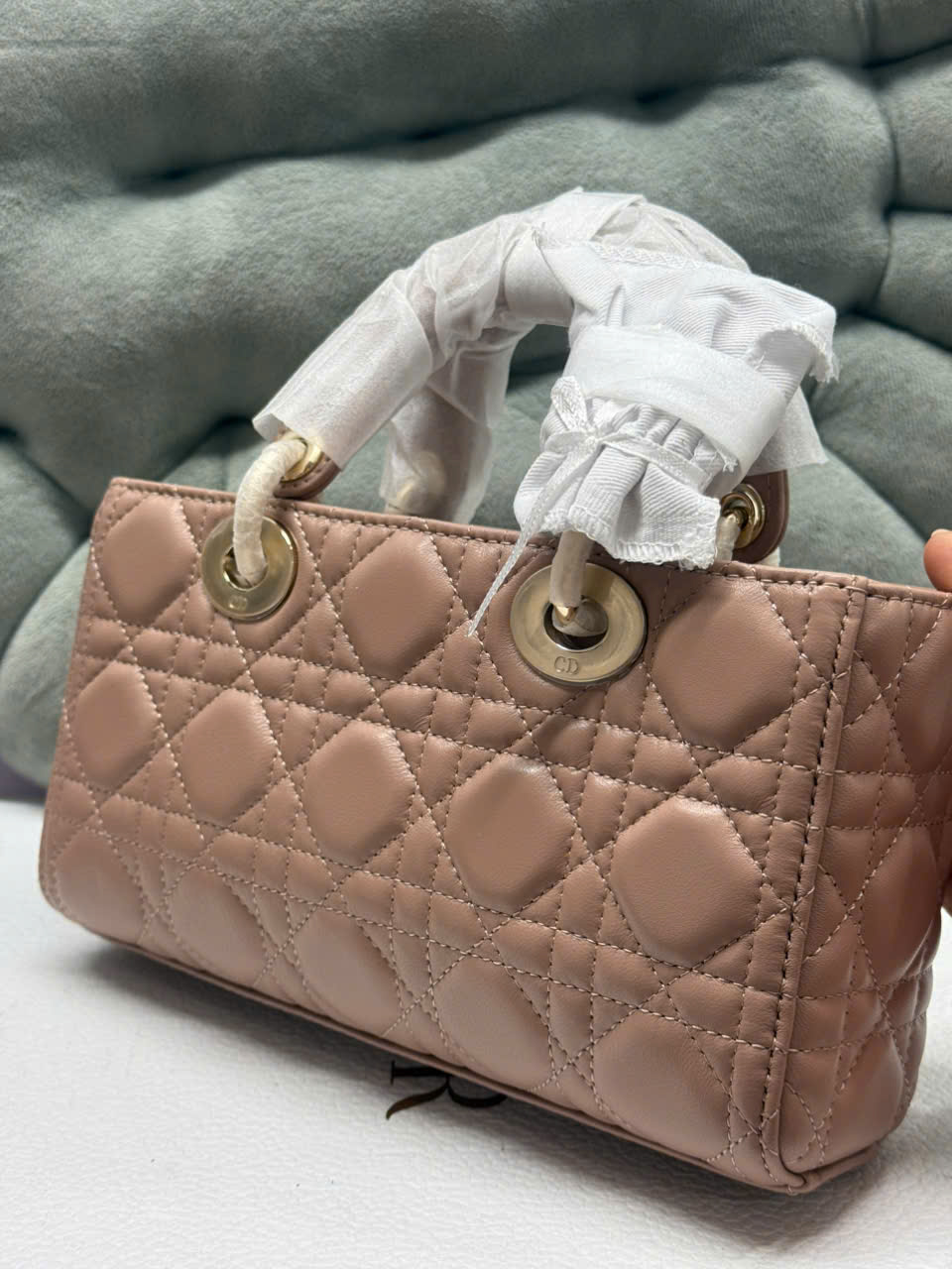 Túi Xách Nữ Dior Lady D-Joy Siêu Cấp Màu Hồng Nhạt Khóa Vàng 22cm
