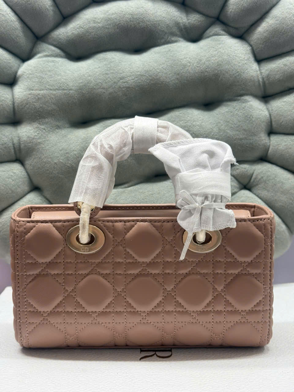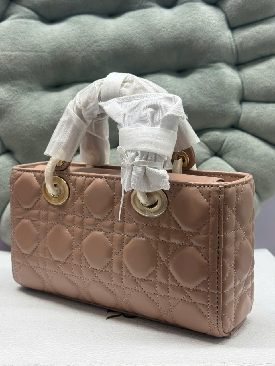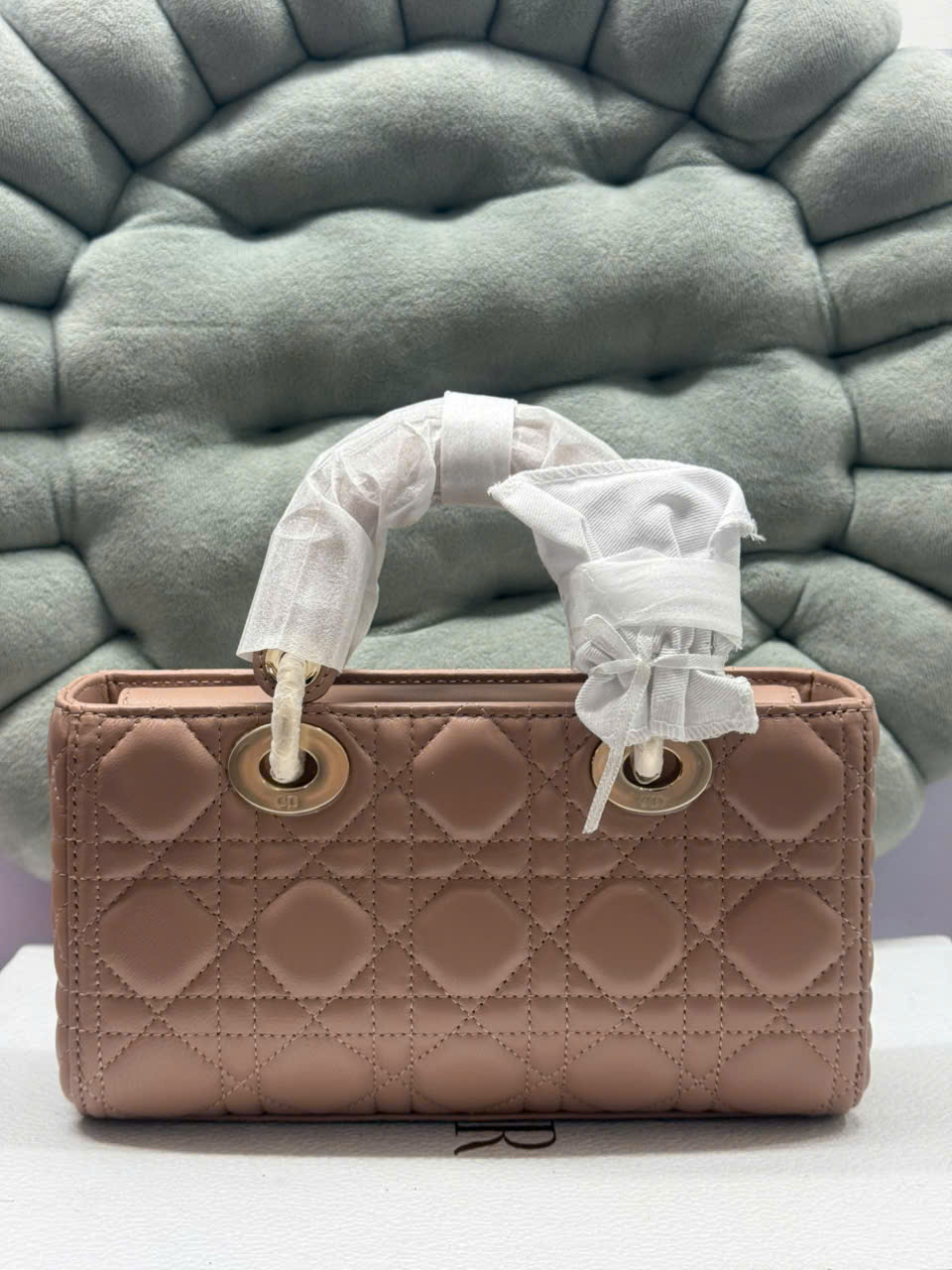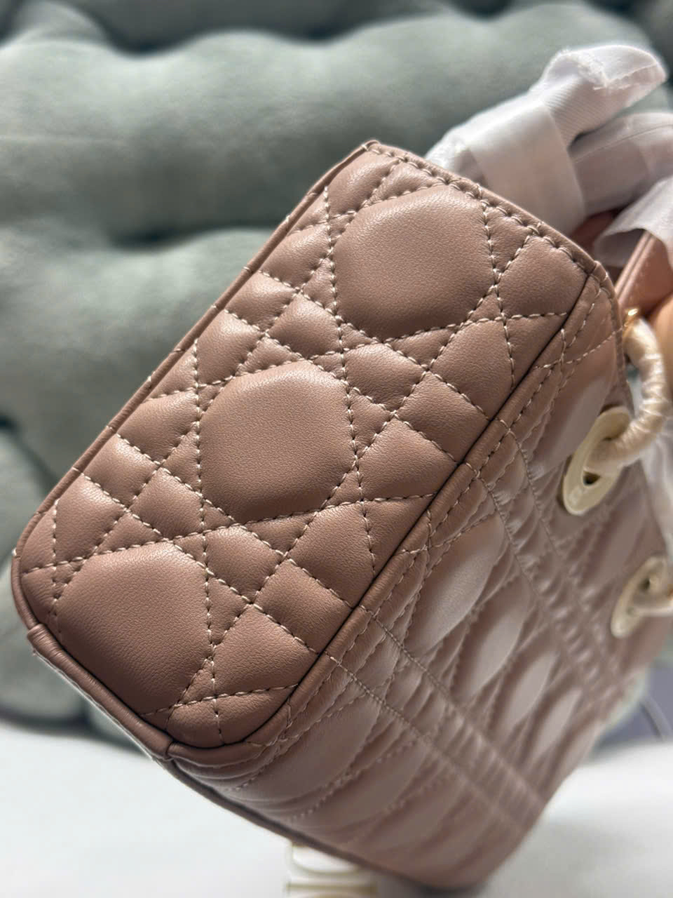 Túi Xách Nữ Dior Lady D-Joy Siêu Cấp Màu Hồng Nhạt Khóa Vàng 22cm