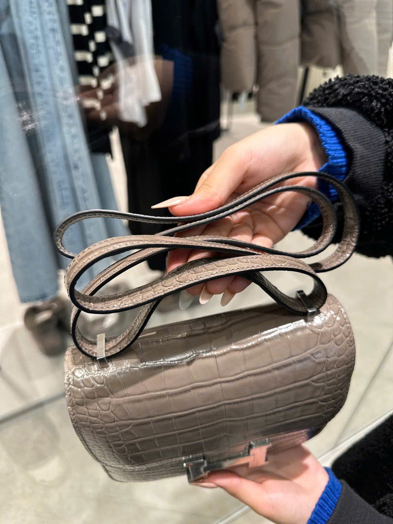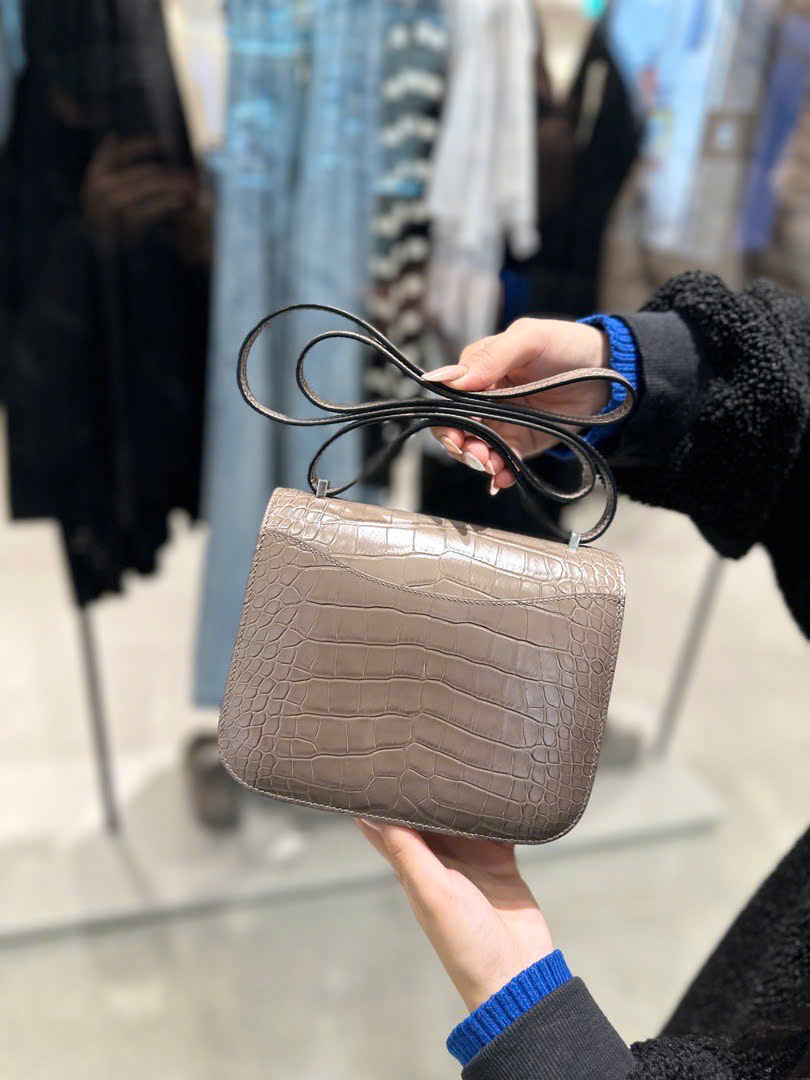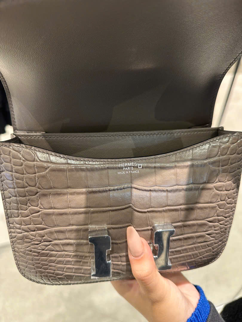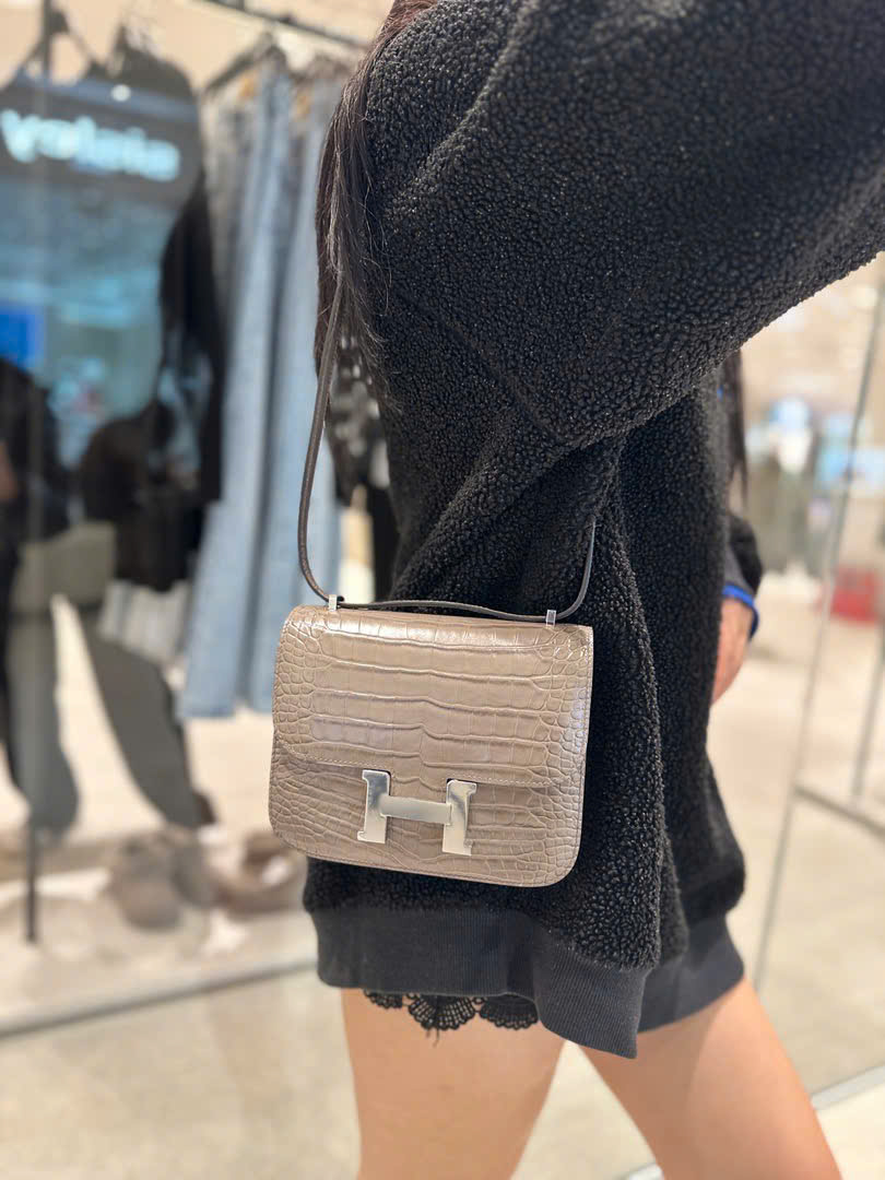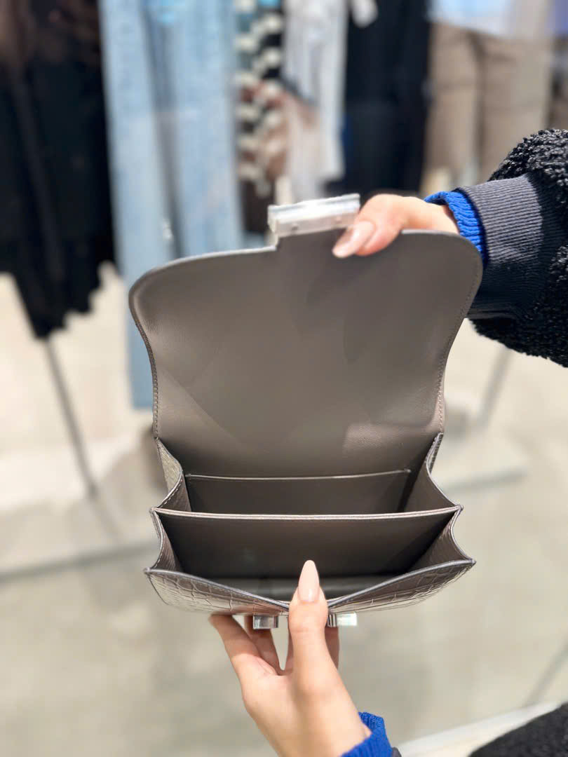 Túi Xách Nữ Hermes Constance Like Auth Vân Da Cá Sấu Khoá Bạc 18cm