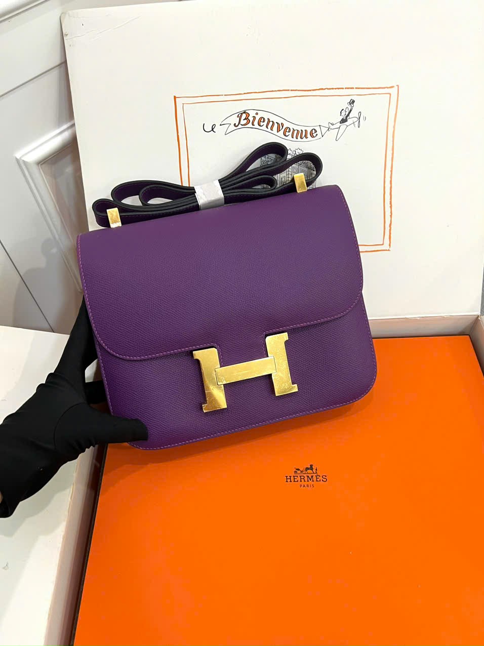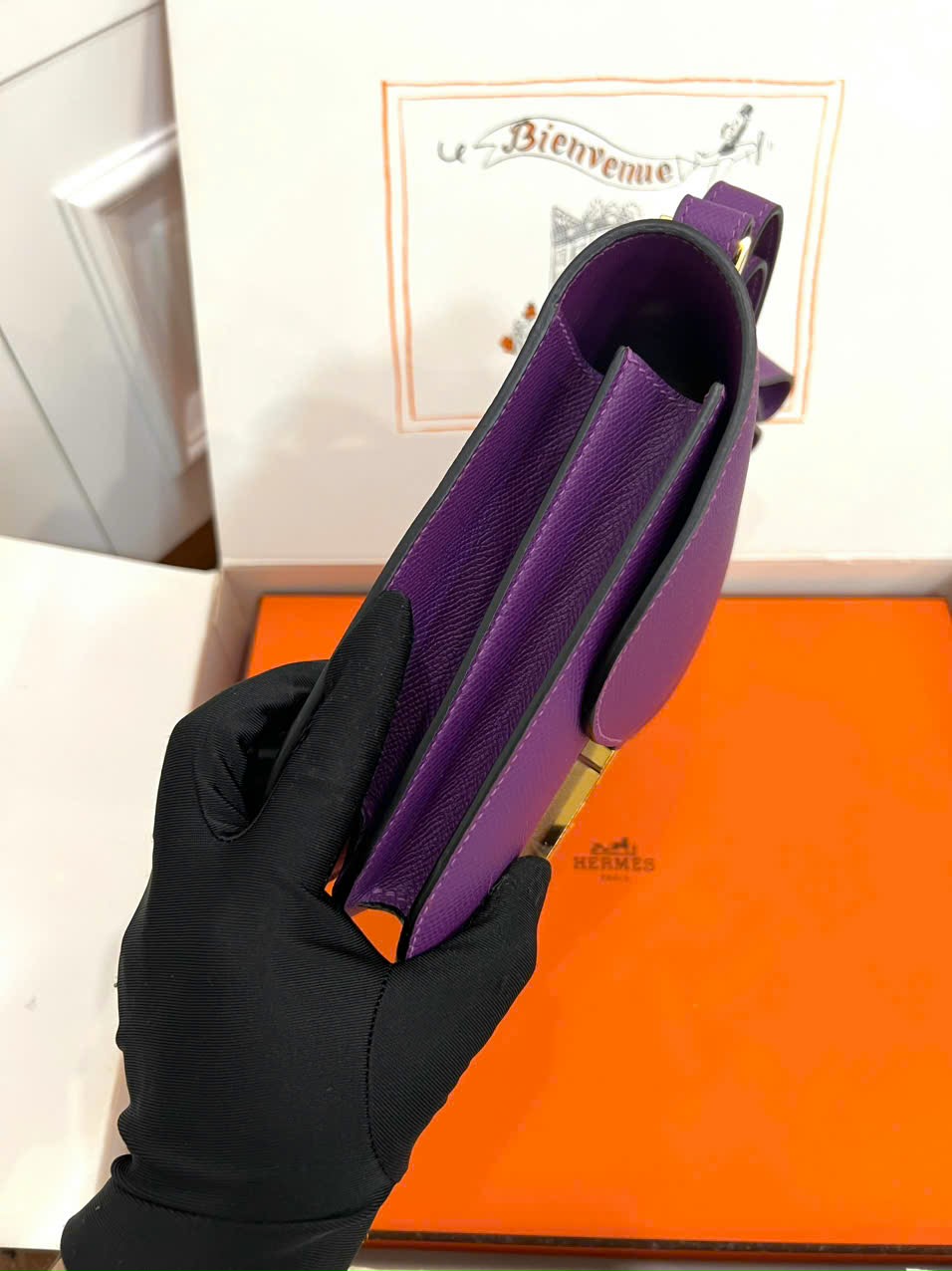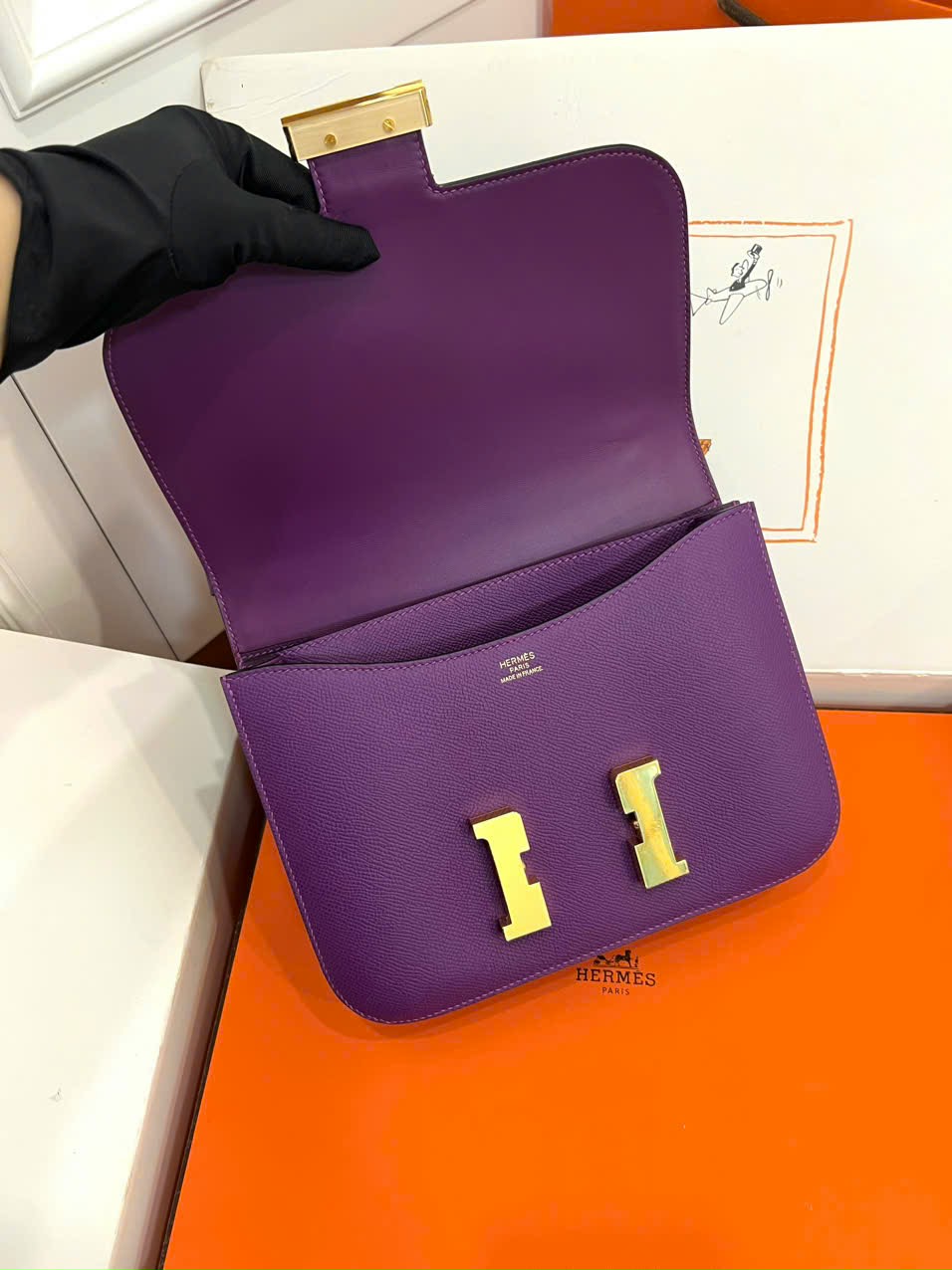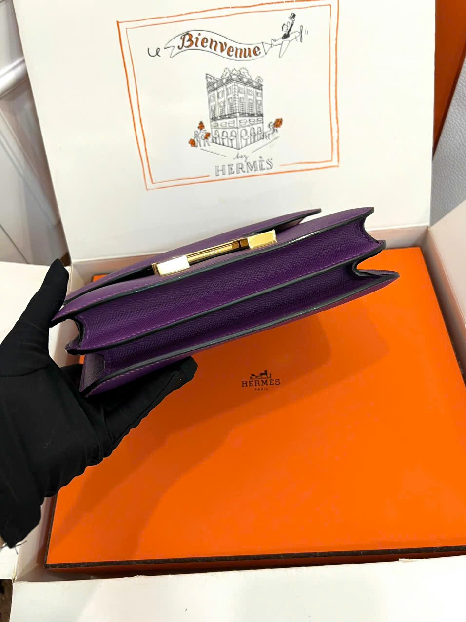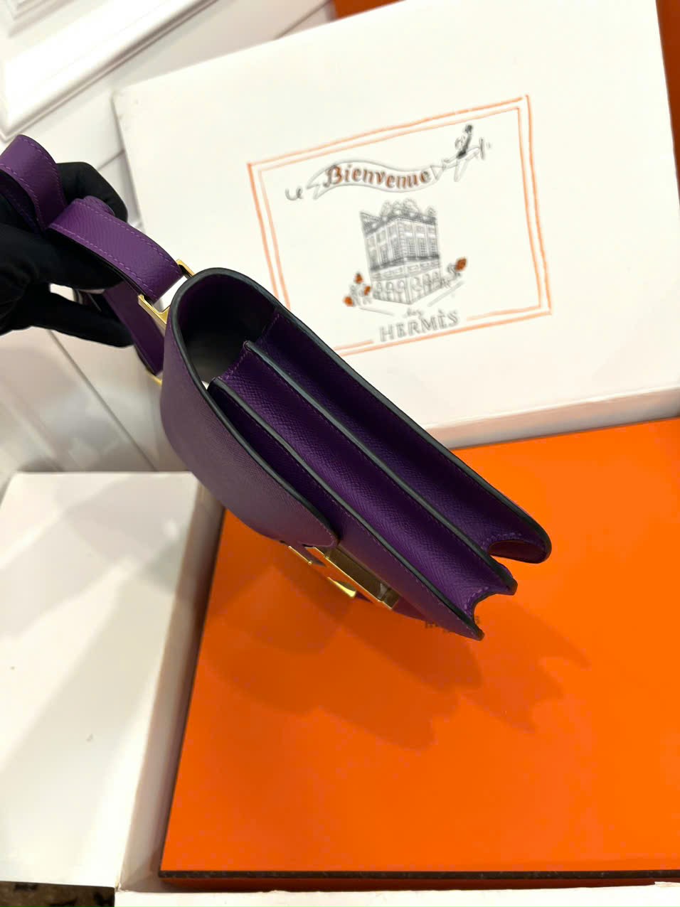 Túi Xách Nữ Hermes Constance Siêu Cấp Màu Tím Khoá Vàng 18cm