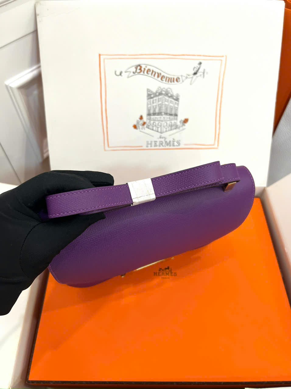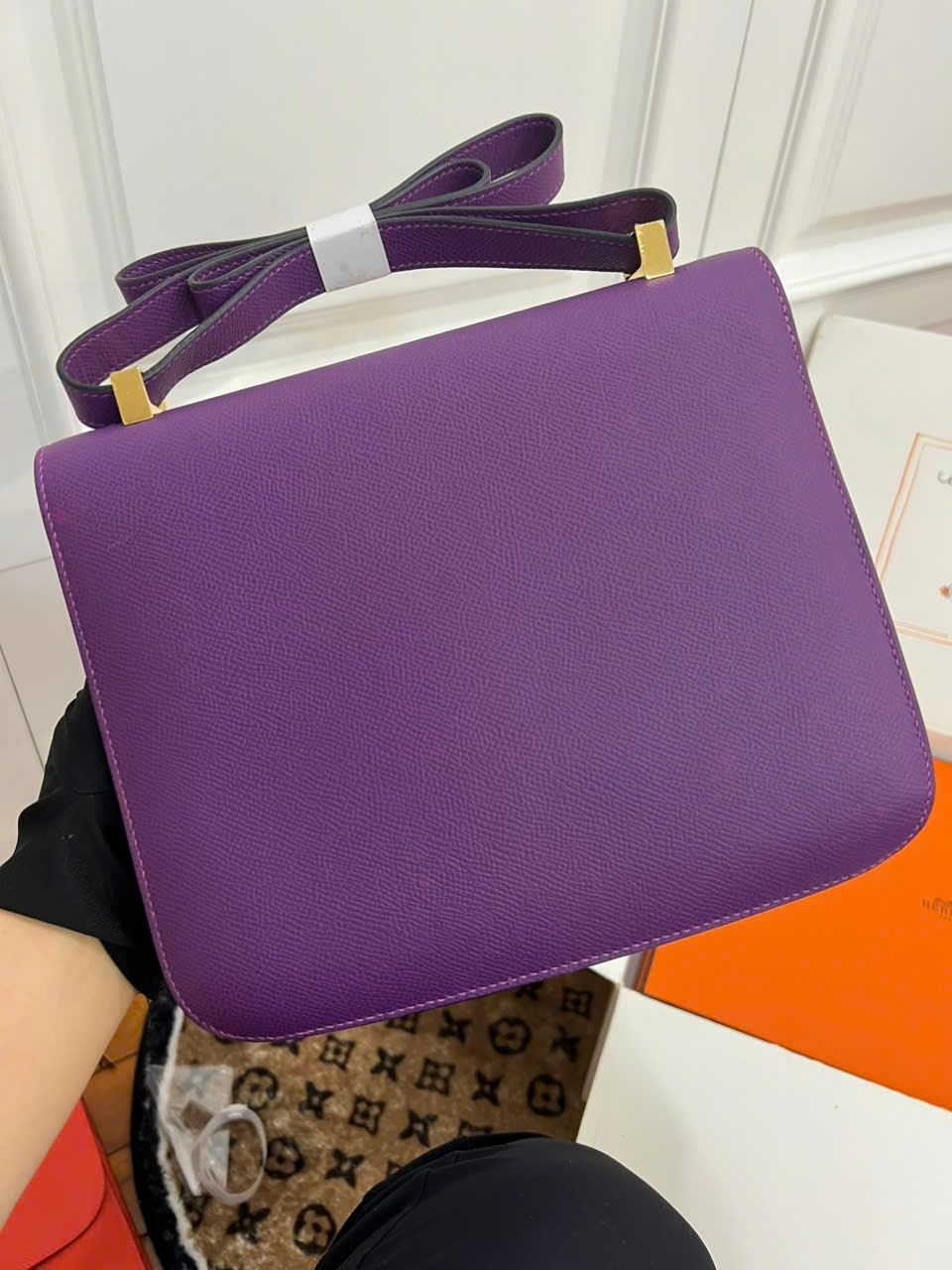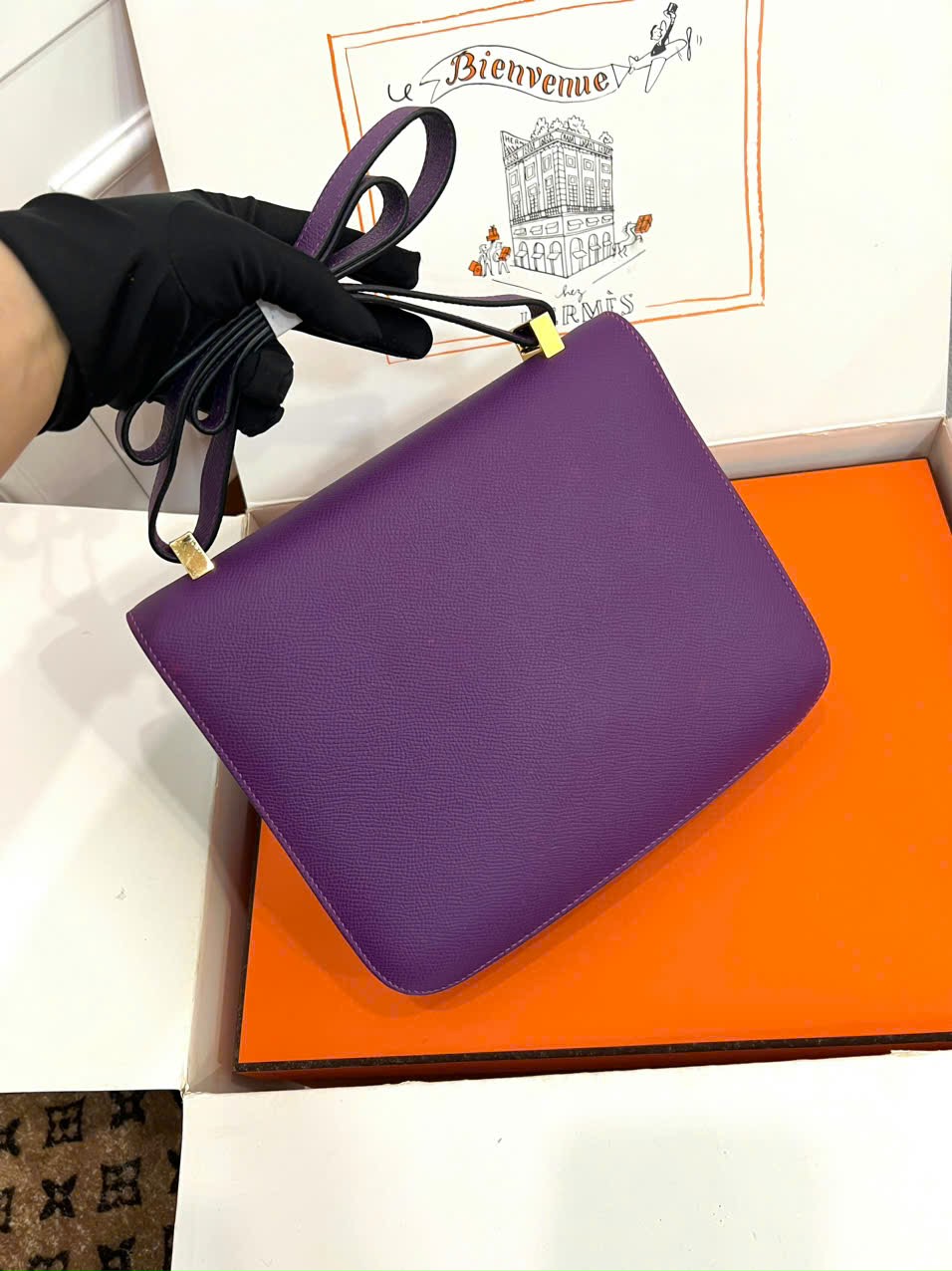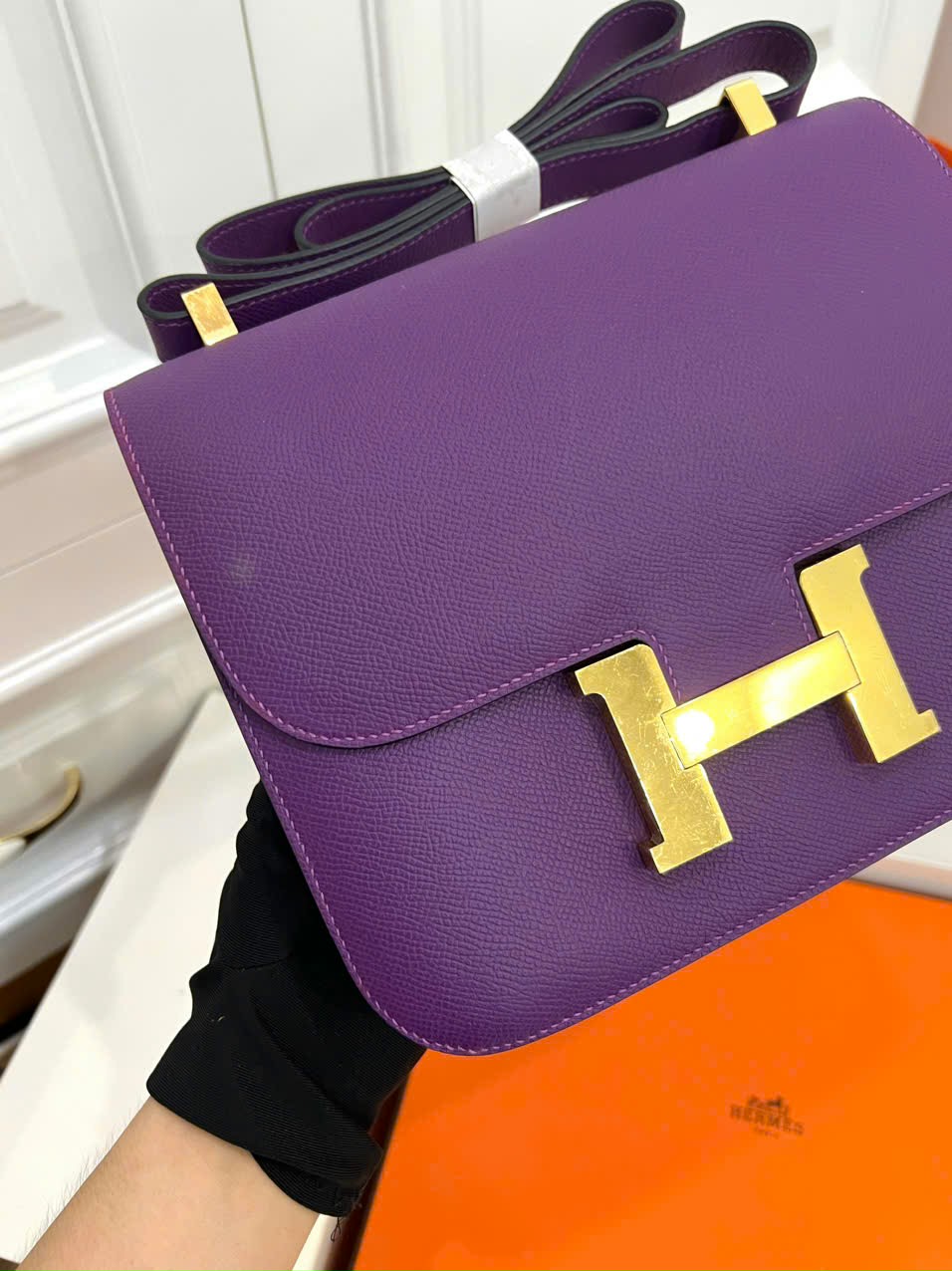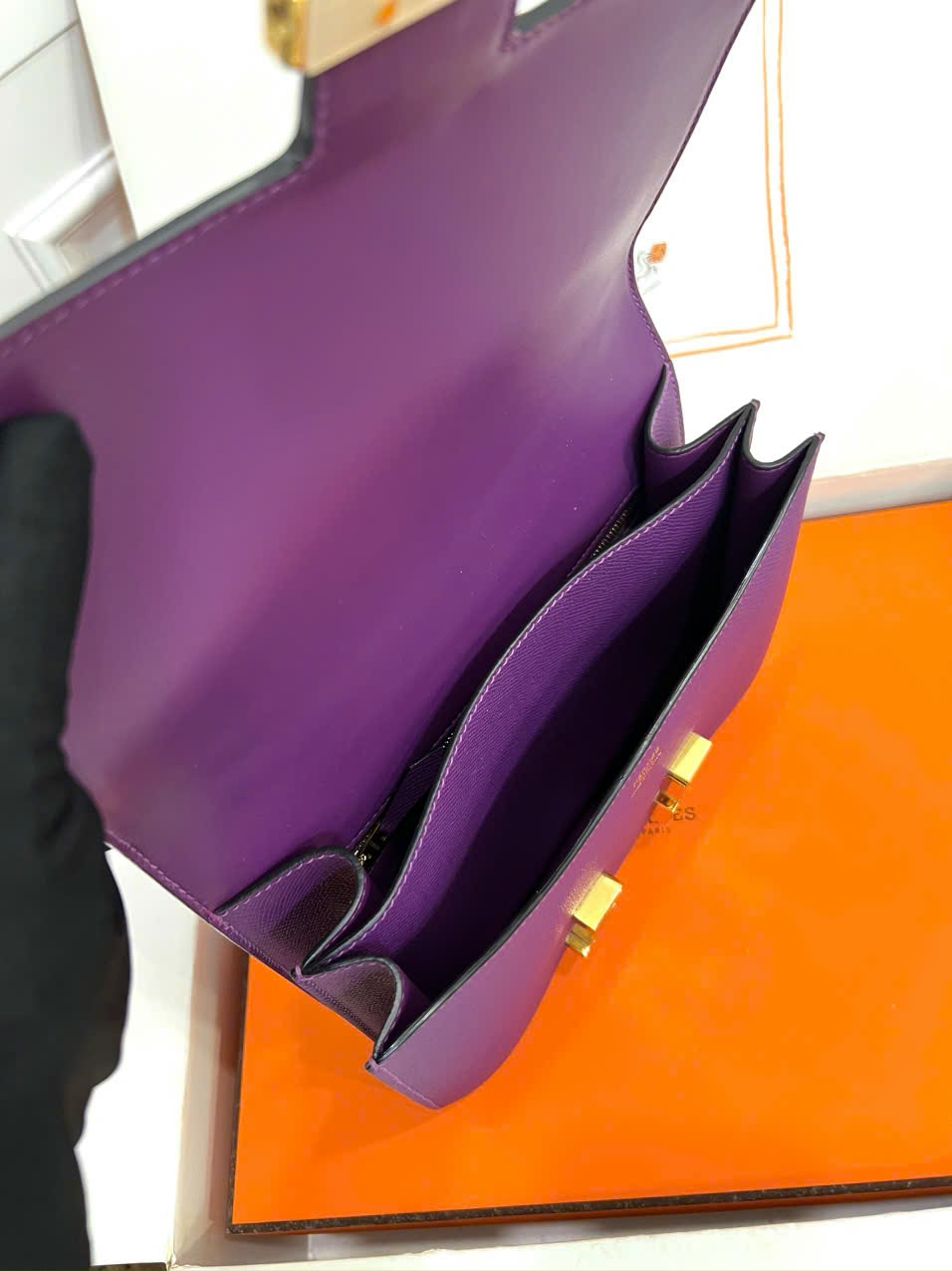 Túi Xách Nữ Hermes Constance Siêu Cấp Màu Tím Khoá Vàng 18cm