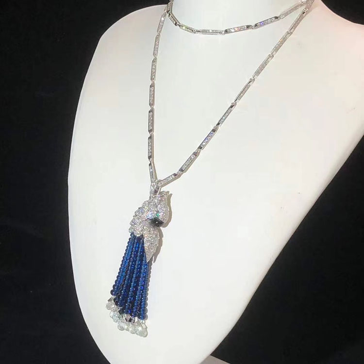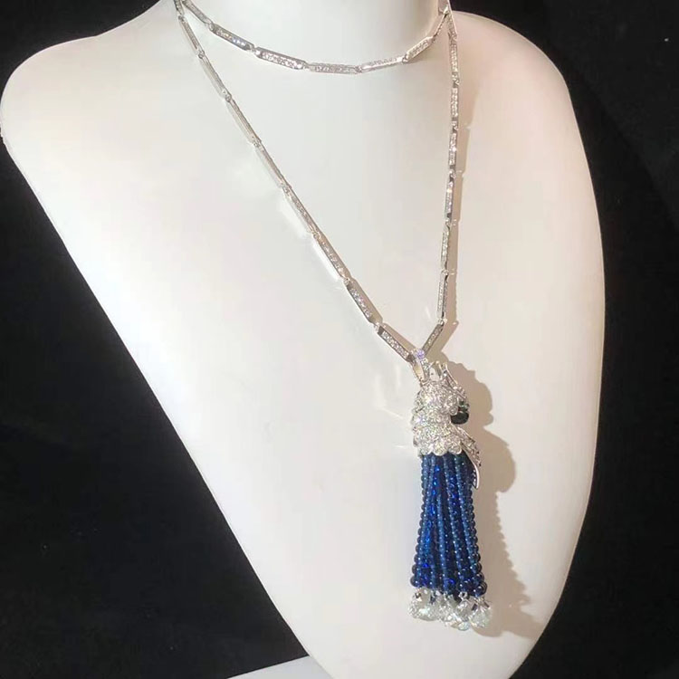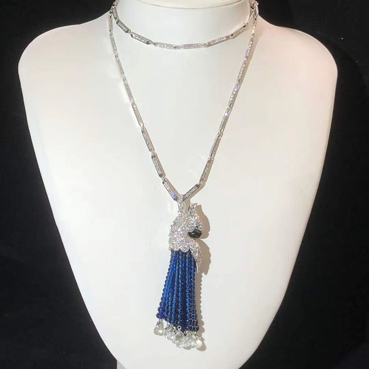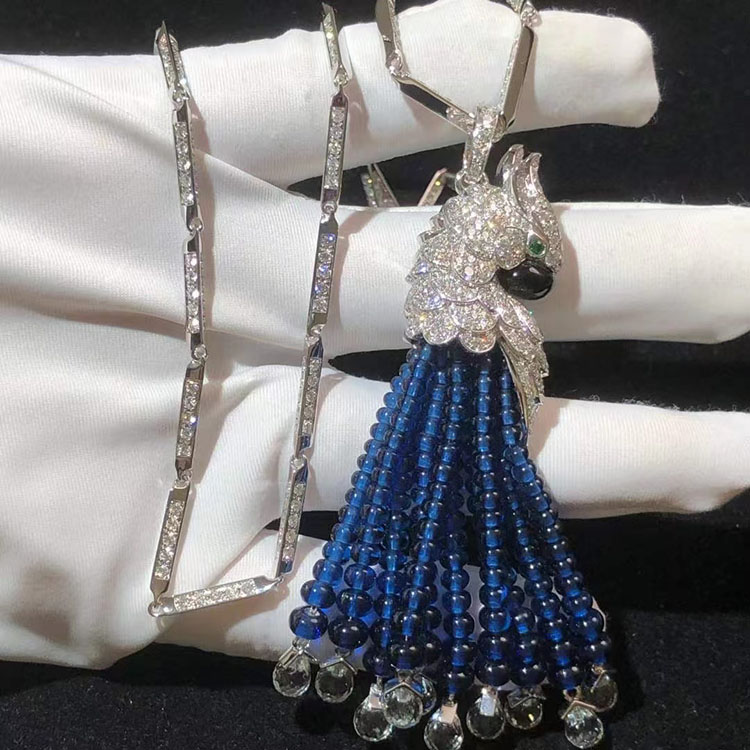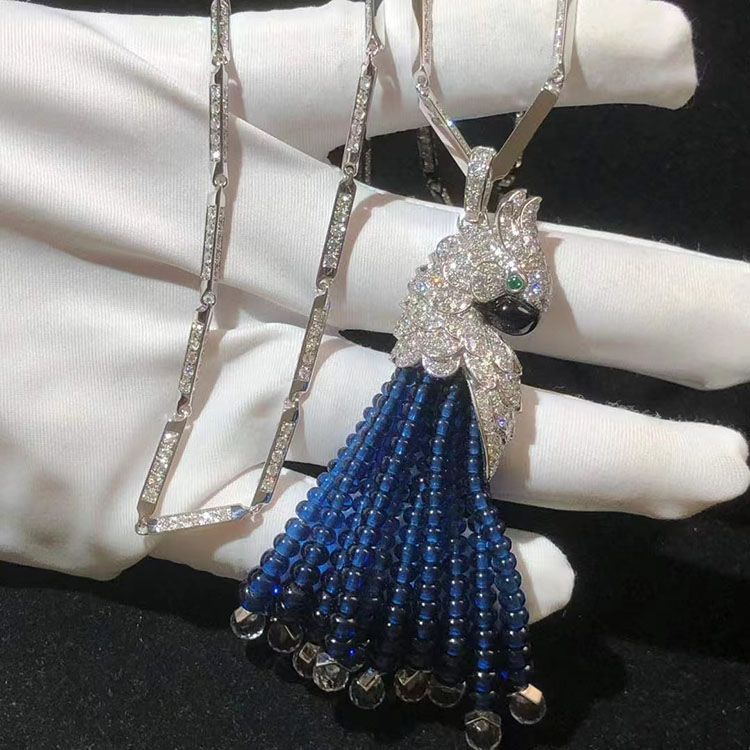 Vòng Cổ Cartier Thiết Kế Hình Con Vẹt Chế Tác Vàng Trắng 18K Đính Kim Cương Tự Nhiên