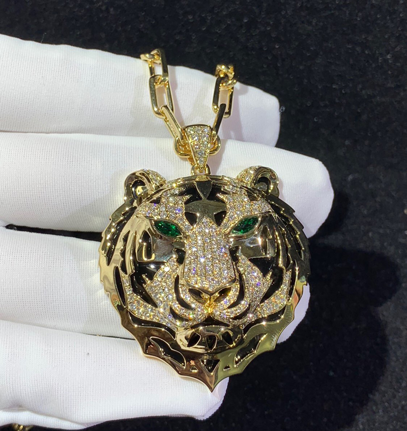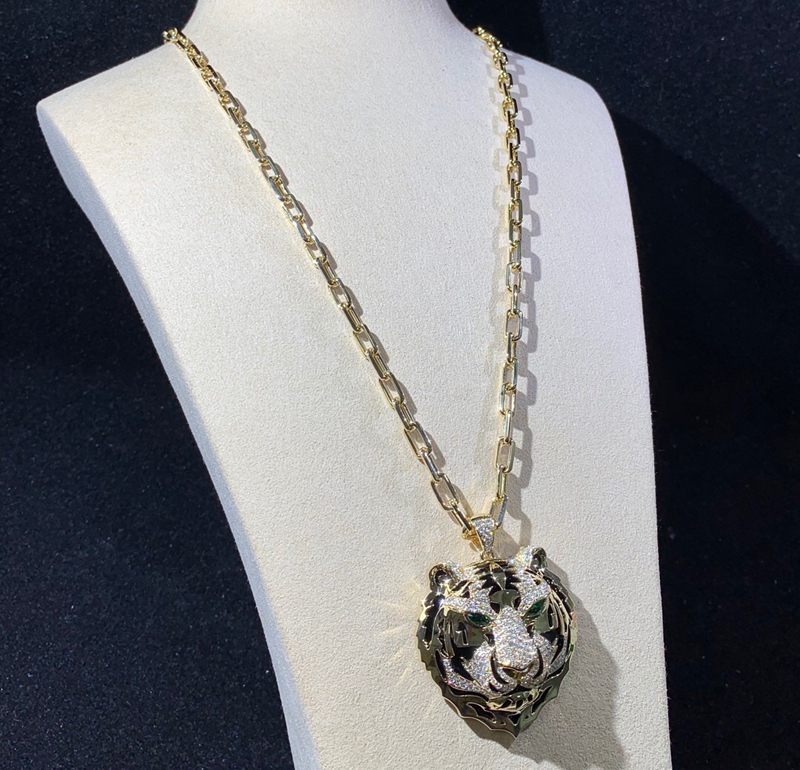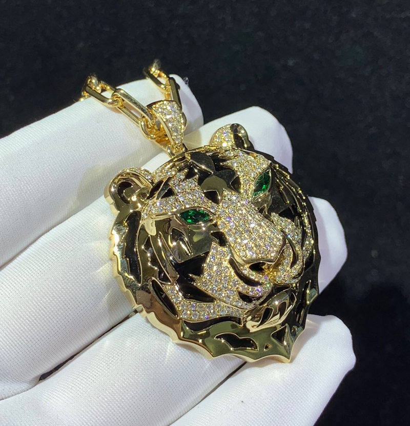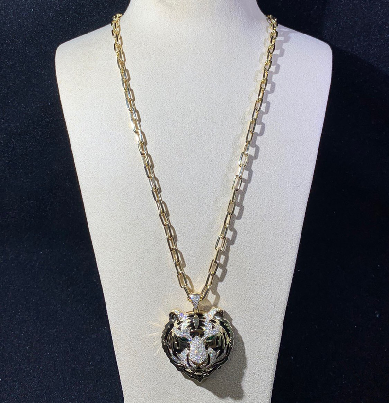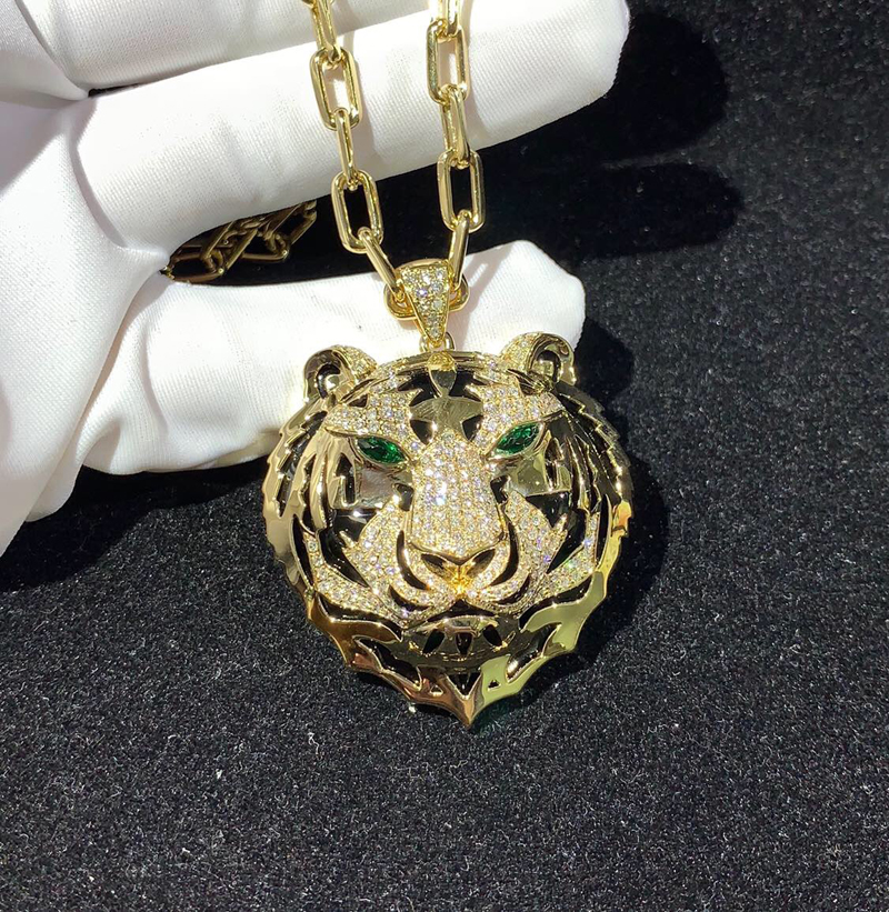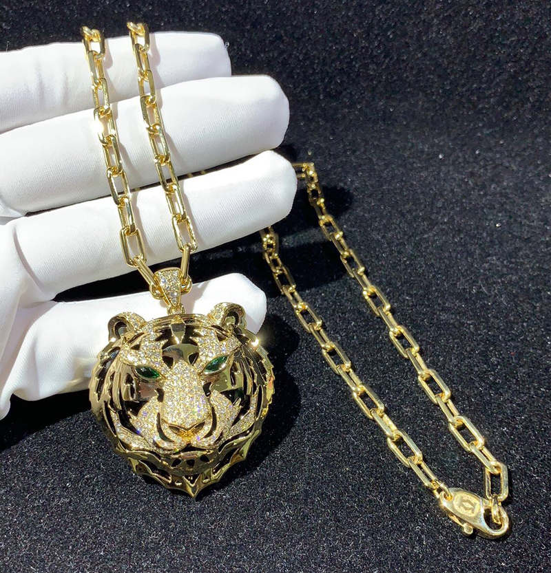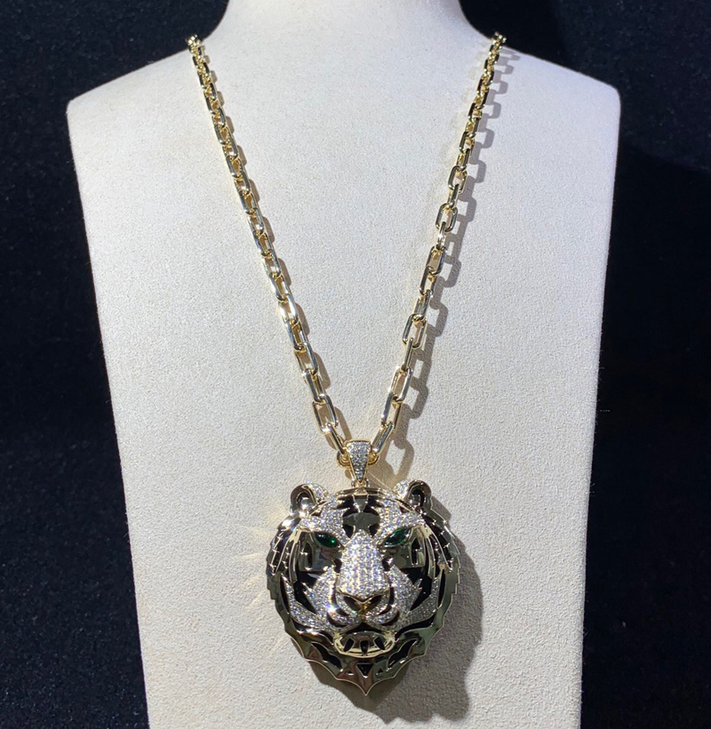 Vòng Cổ Nam Cartier Thiết Kế Mặt Hổ Chế Tác Vàng 18K Đính Kim Cương Tự Nhiên