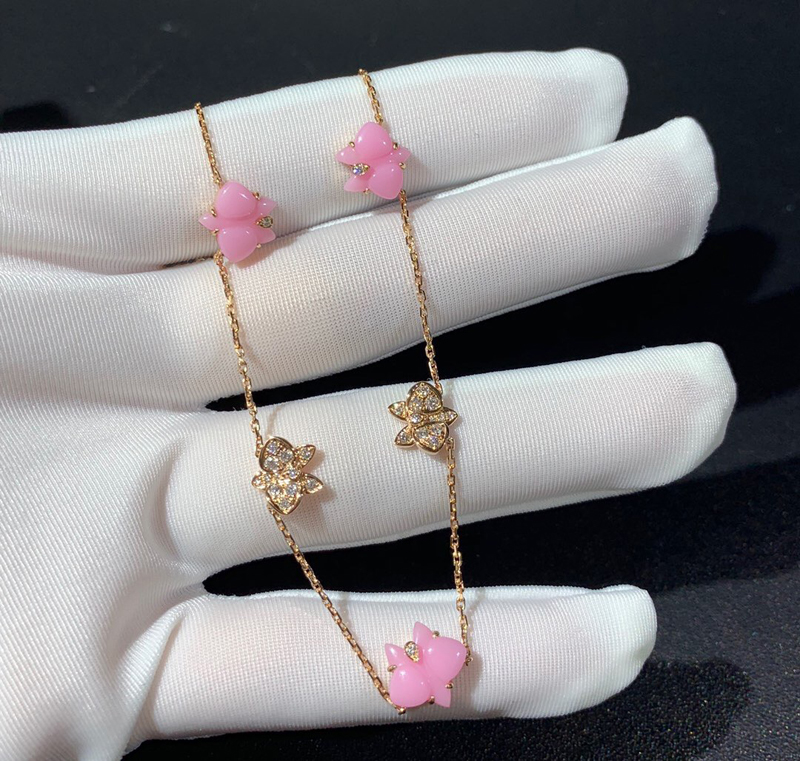 Vòng Cổ Nữ Caresse D’Orchidées Par Cartier Đá Quý Kim Cương Tự Nhiên Vàng Hồng 18K Chế Tác