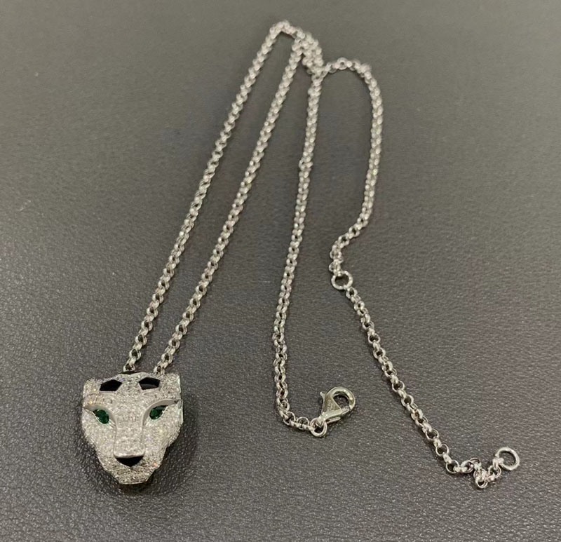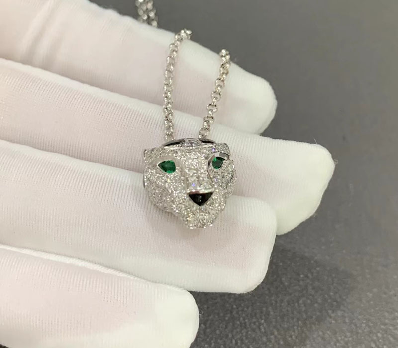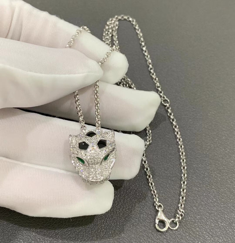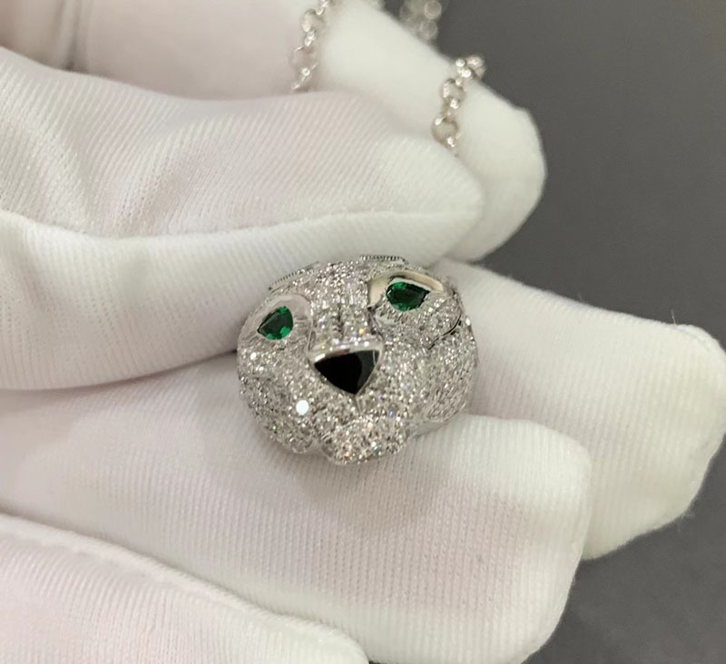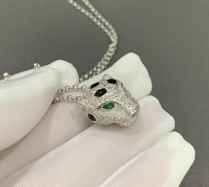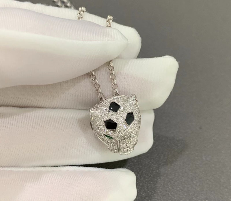 Vòng Cổ Panthère De Cartier Chế Tác Vàng Trắng 18K Đính Kim Cương Tự Nhiên