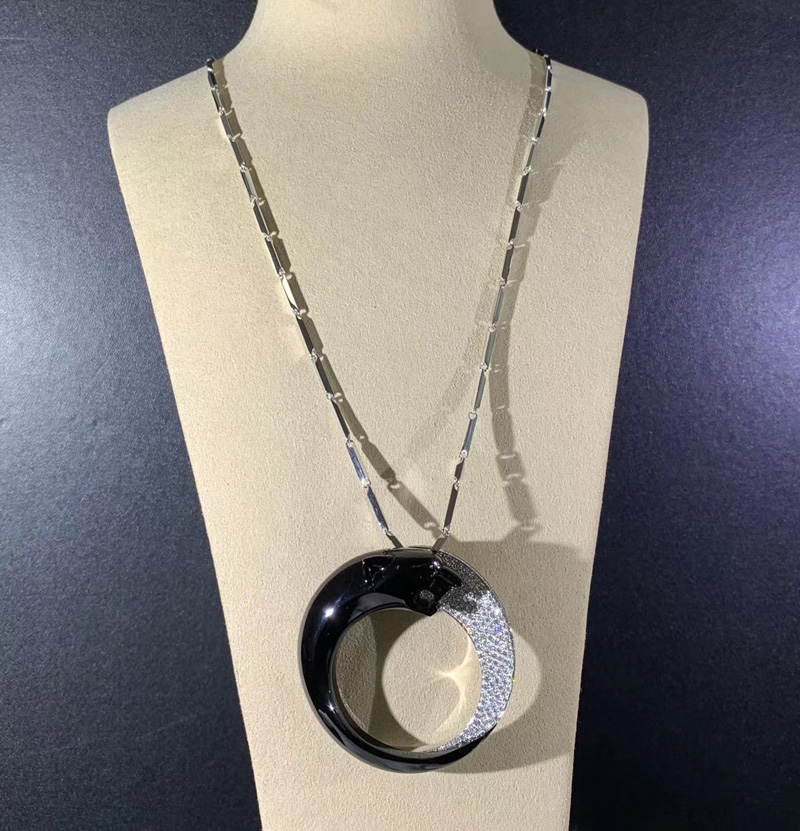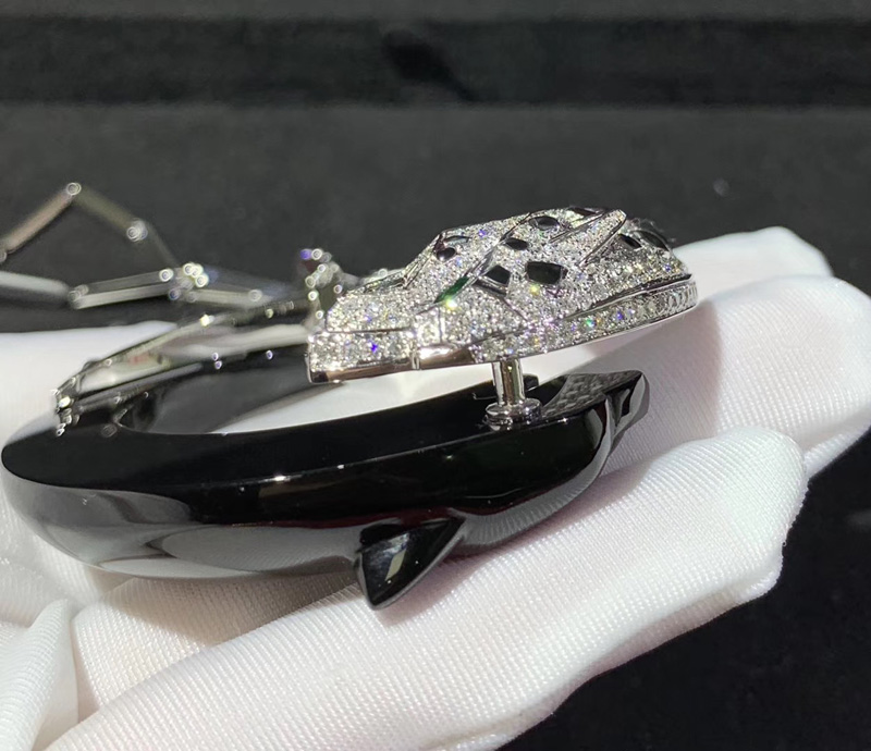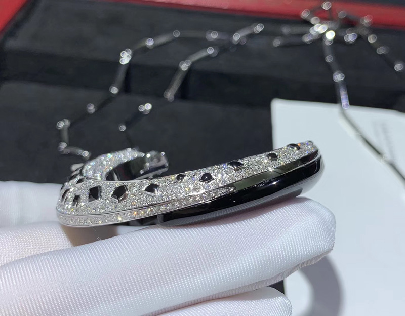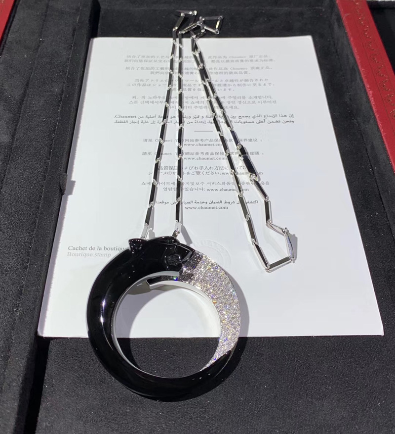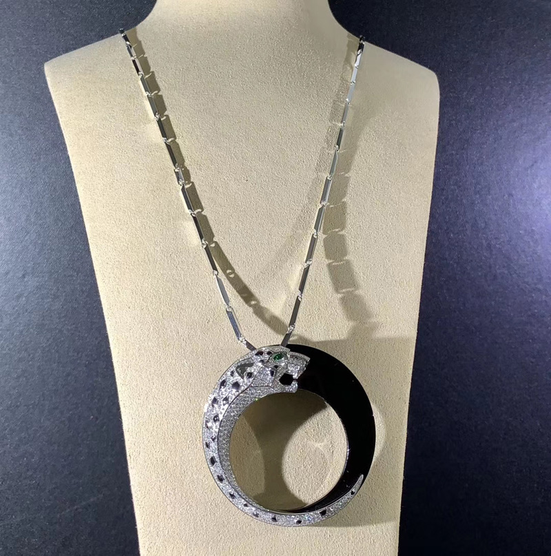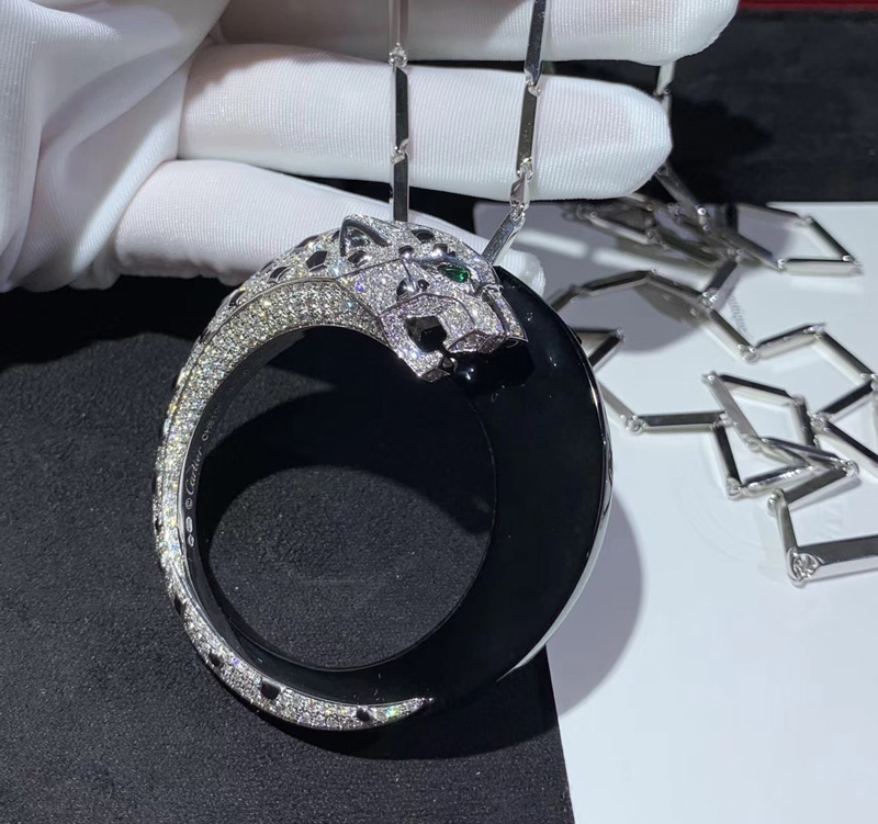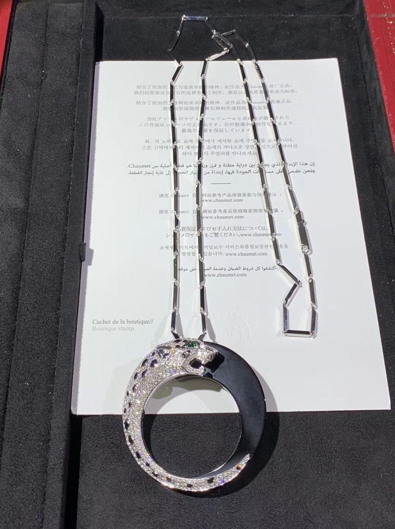 Vòng Cổ Panthère De Cartier Chế Tác Mã Não Kim Cương Tự Nhiên Vàng Trắng 18K
