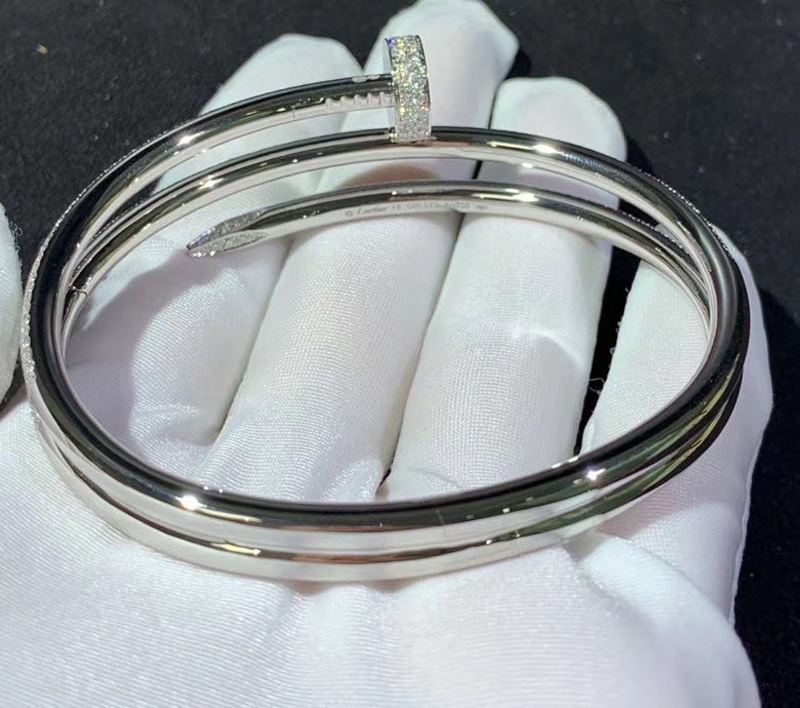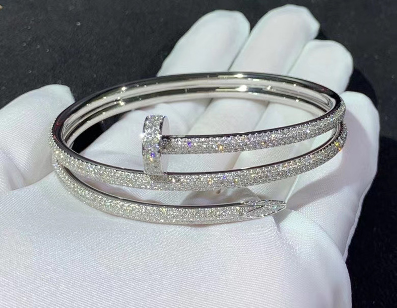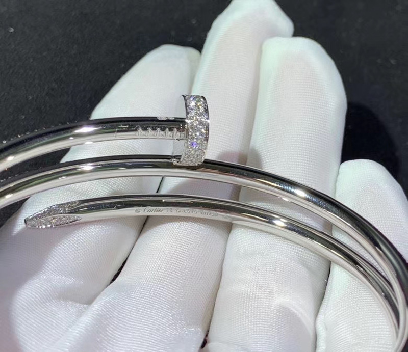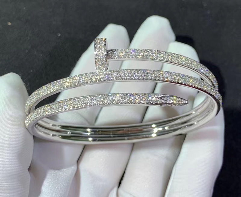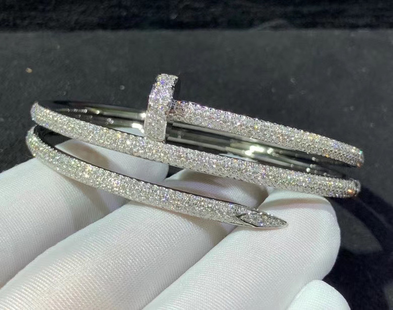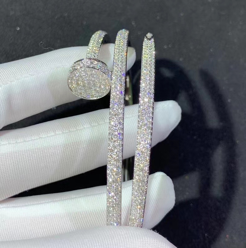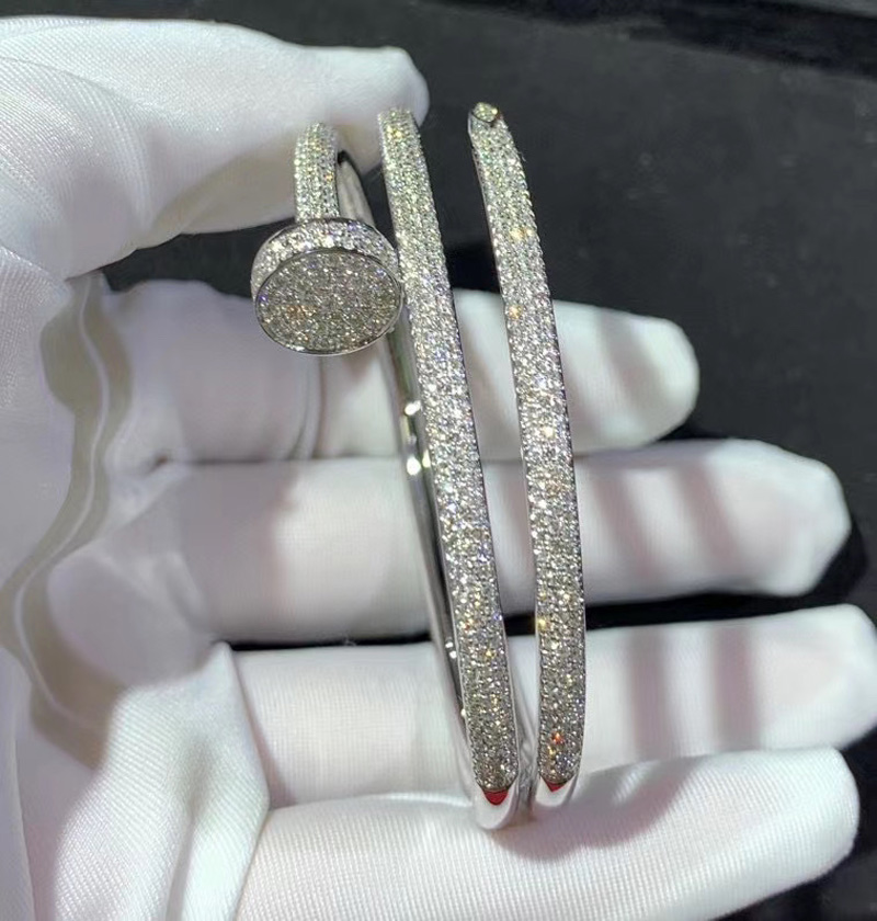 Vòng Tay Cartier Juste Un Clou Cuốn 3 Vòng Chế Tác Vàng Trắng 18K Kim Cương Tự Nhiên