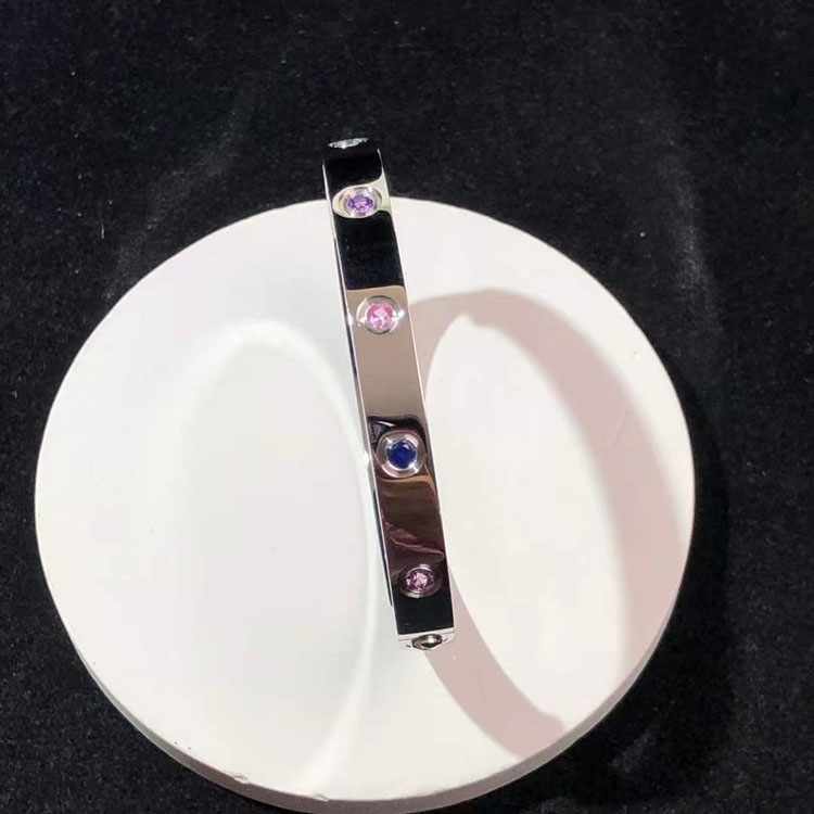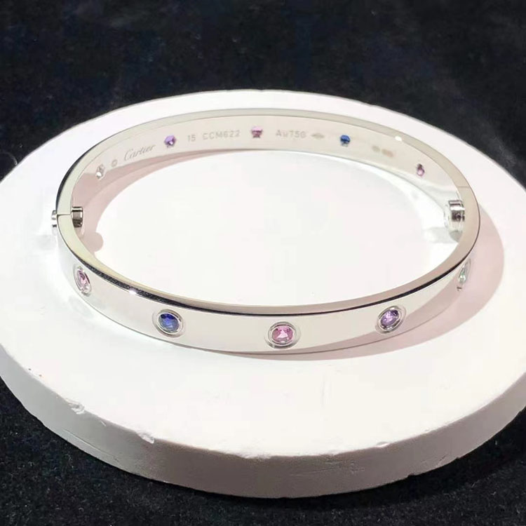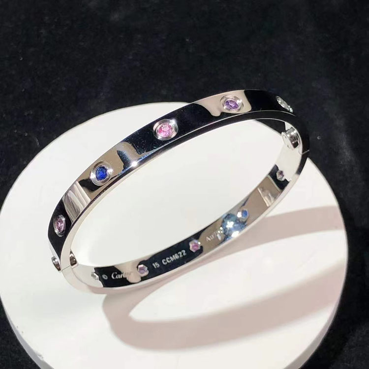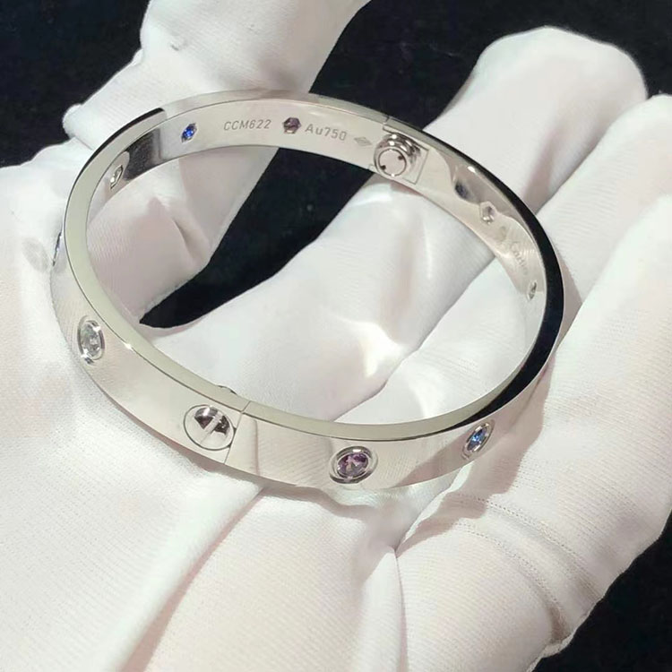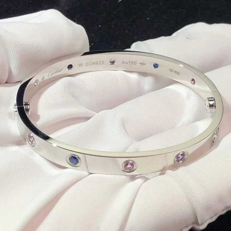 Vòng Tay Cartier Love Chế Tác Vàng Trắng 18K Đính Đá Quý Tự Nhiên