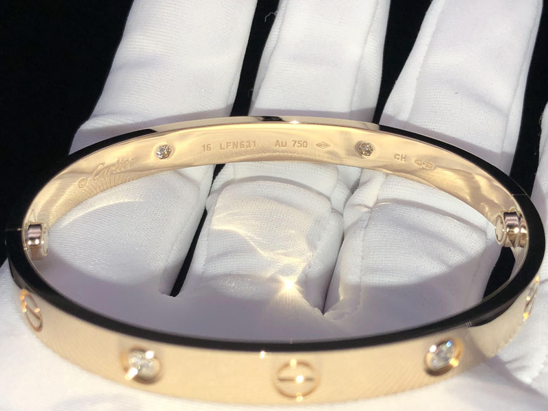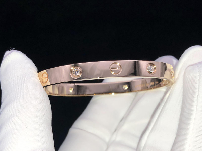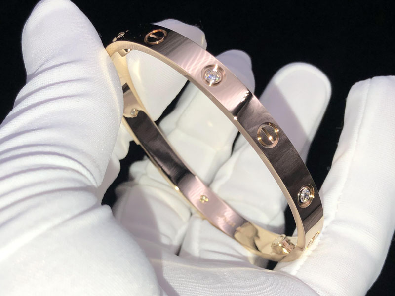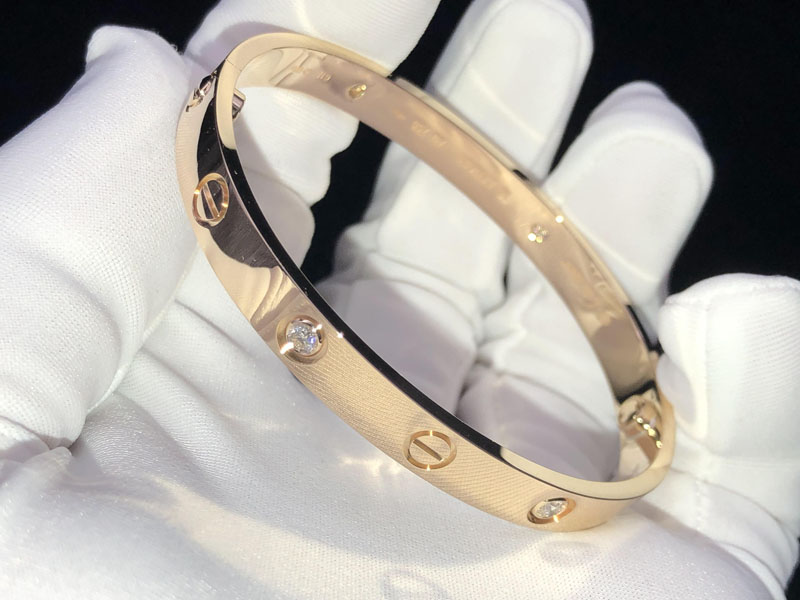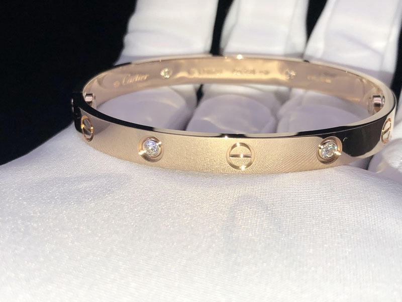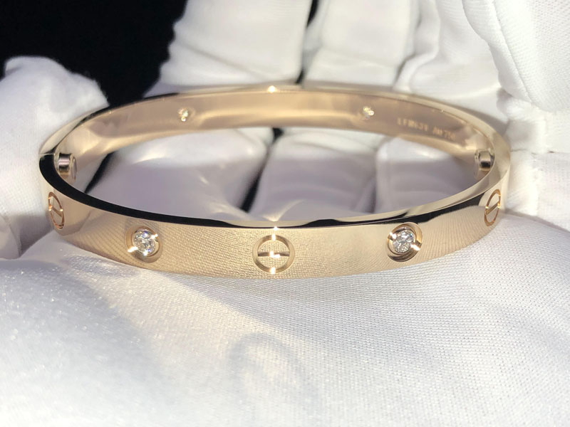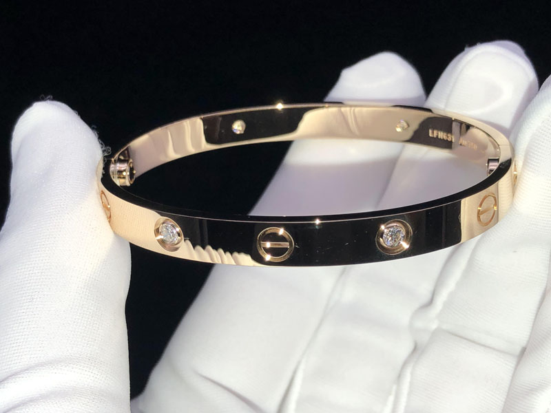 Vòng Tay Cartier Love Chế Tác Kim Cương Tự Nhiên Vàng Hồng 18K
