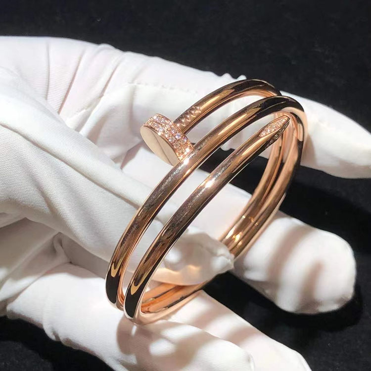 Vòng Tay Cartier Thiết Kế Hình Đinh Tán Chế Tác Vàng Hồng 18K Đính Kim Cương Tự Nhiên