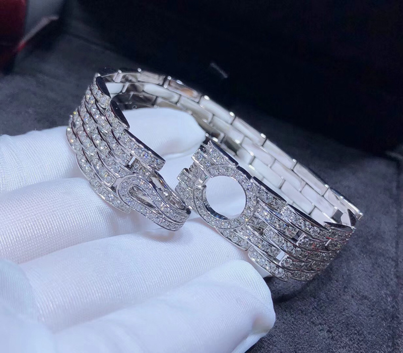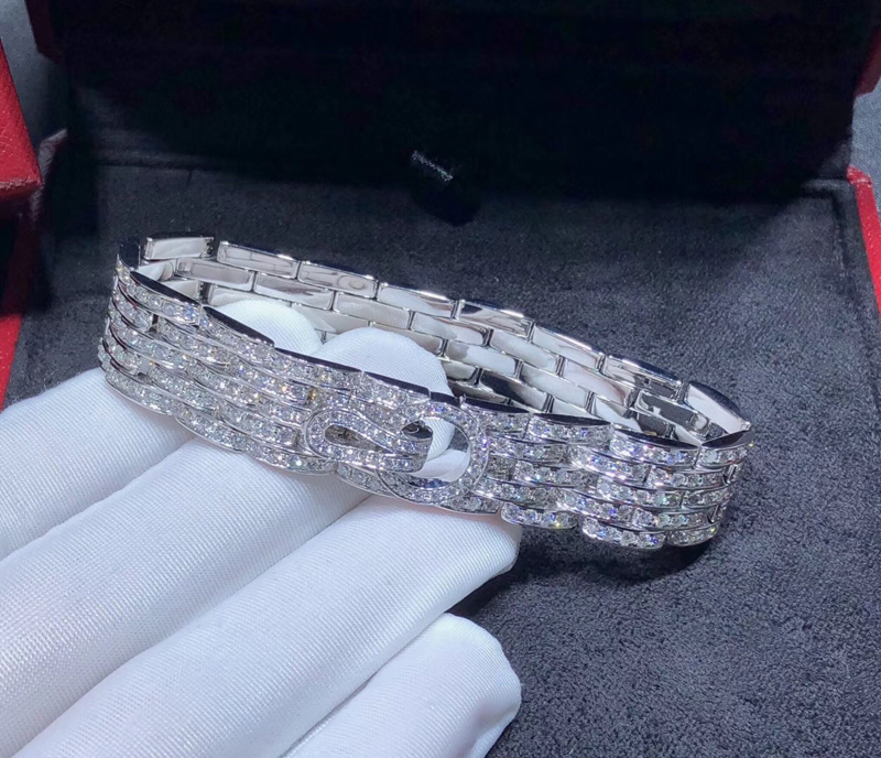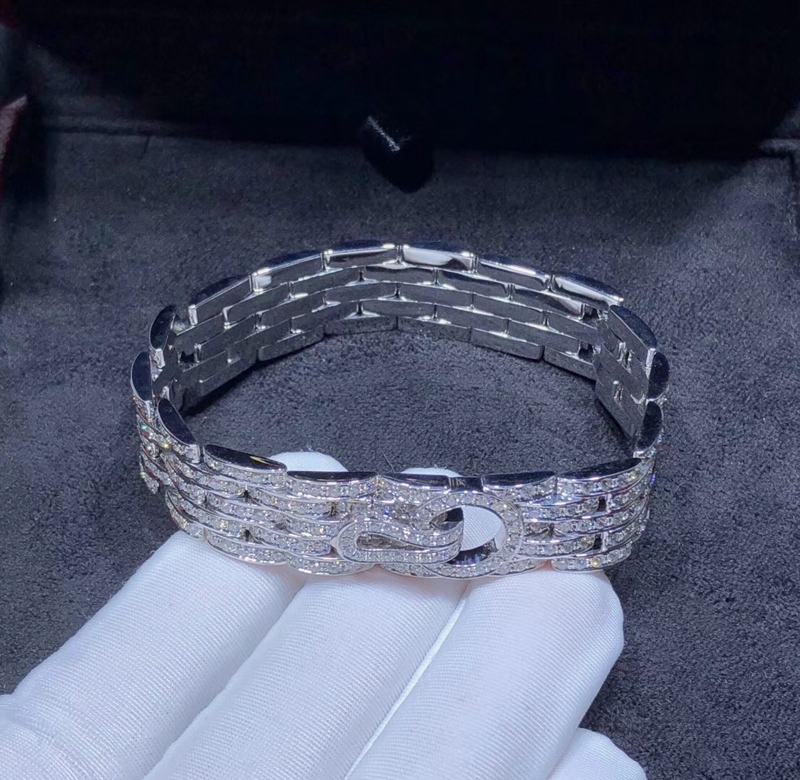 Vòng Tay Chế Tác Cartier Agrafe Kim Cương Tự Nhiên Vàng Trắng 18K