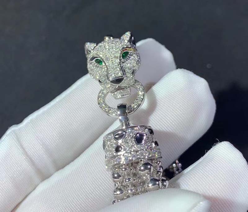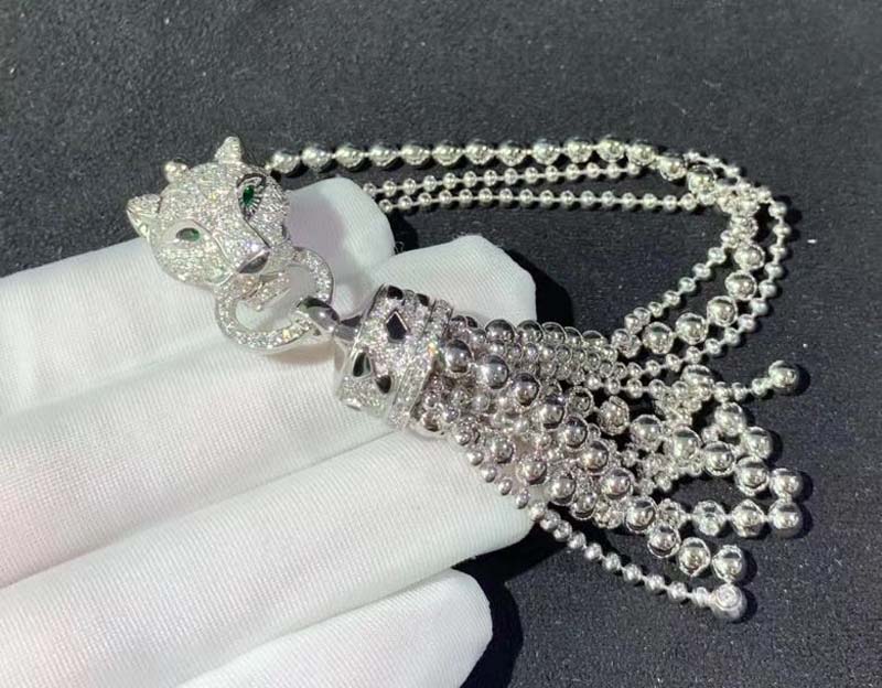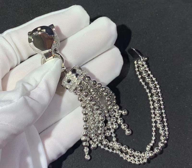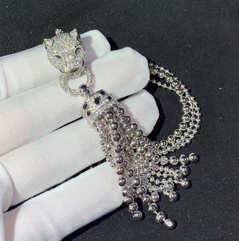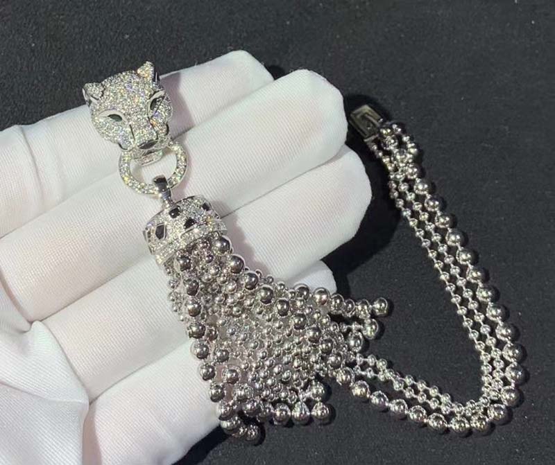 Vòng Tay Panthère De Cartier Chế Tác Mã Não Kim Cương Tự Nhiên Vàng Trắng 18K