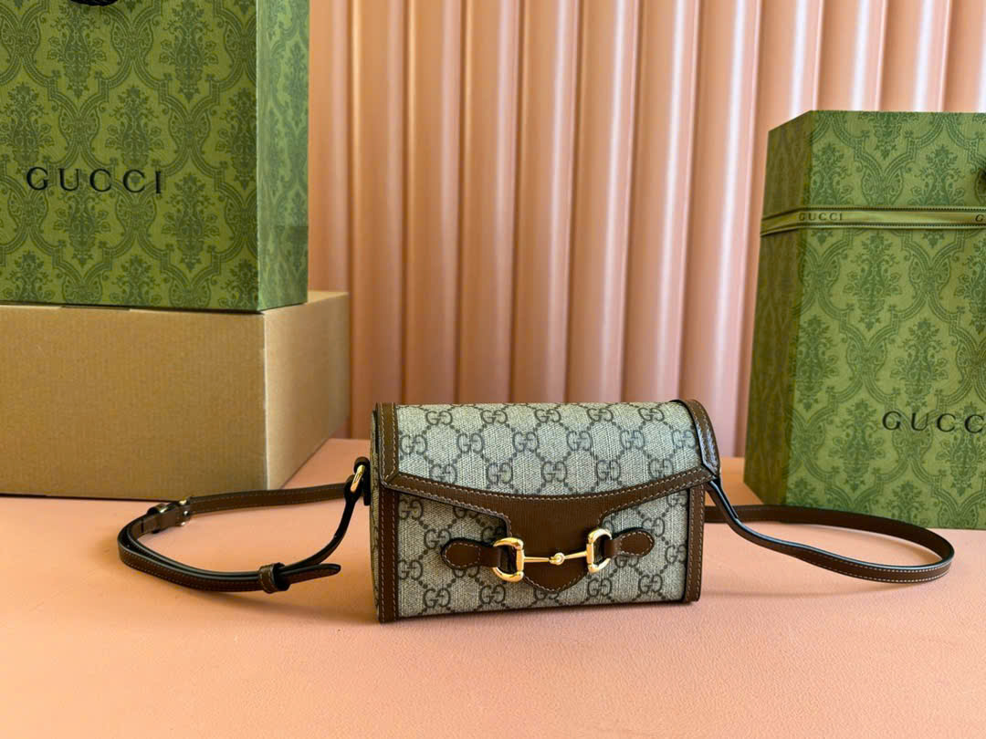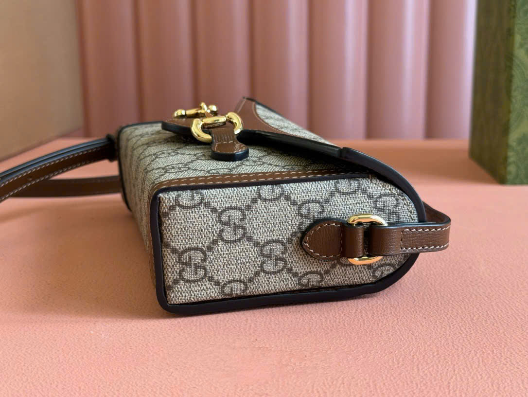 Túi Đeo Chéo Gucci Horsebit 1955 Mini Siêu Cấp Màu Nâu 18cm