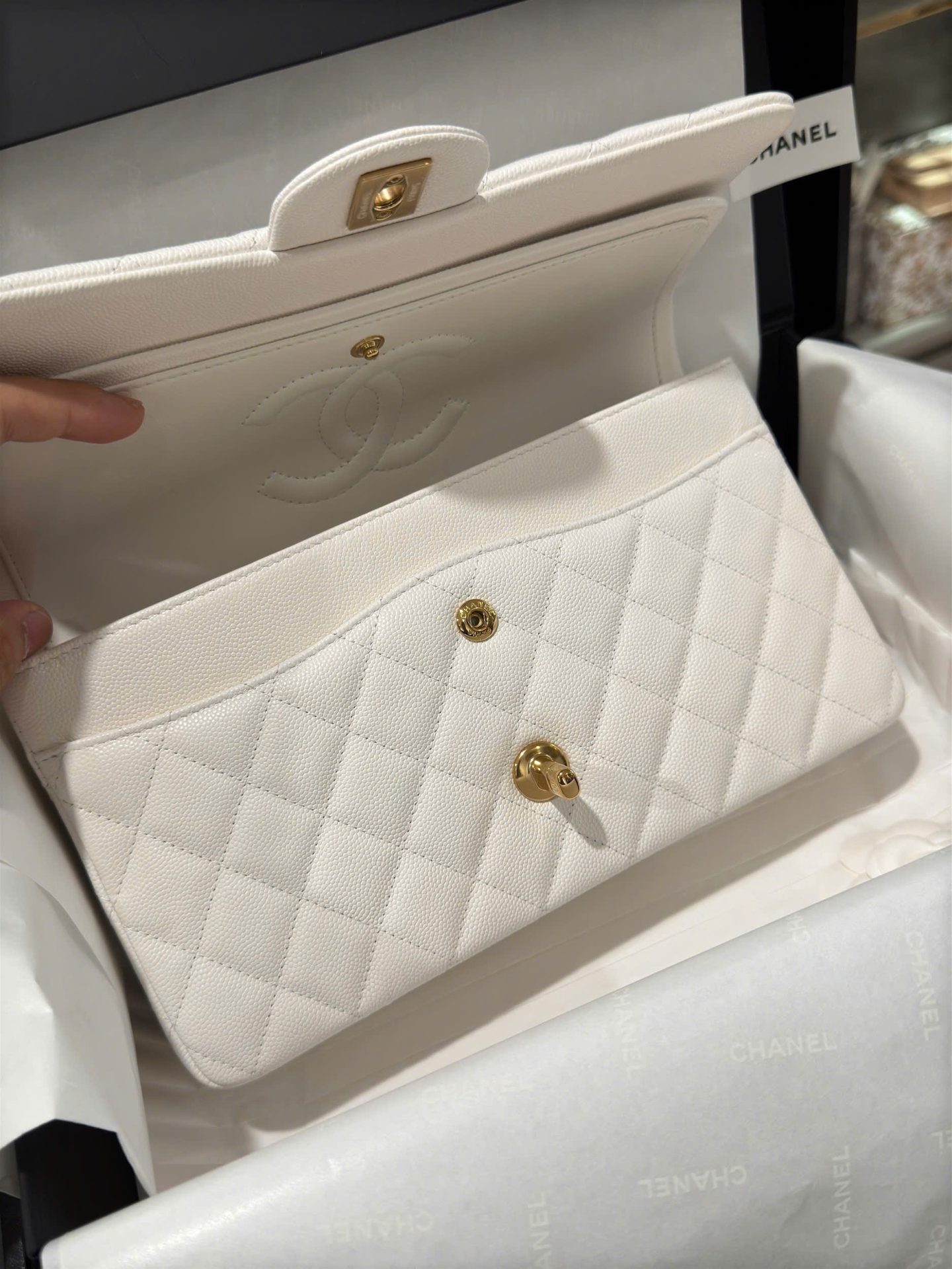 Túi Xách Chanel Classic Nữ Màu Trắng Khoá Vàng Rep 11 Cao Cấp đang có sẵn tại King Replica.