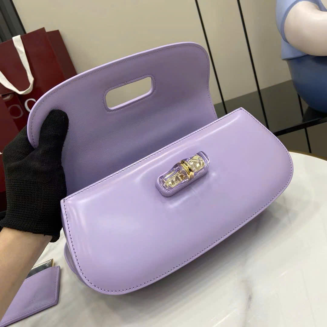 Túi hoa Nữ Hàng Gucci Bamboo Diva Chất Da Bóng Màu Tím 26.6x13x8cm